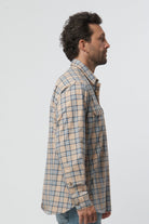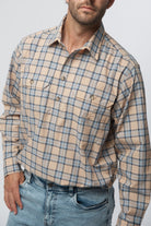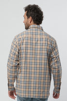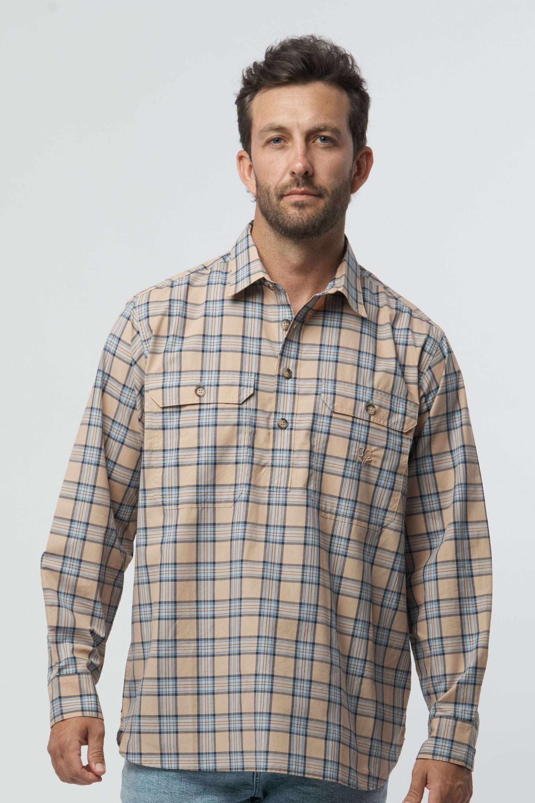 Mens 1/2 Button Cotton Check Shirt - Brown/Navy