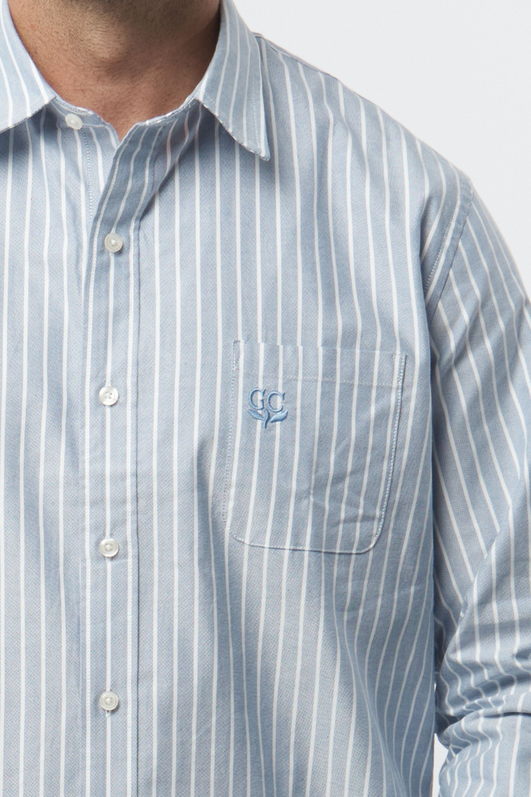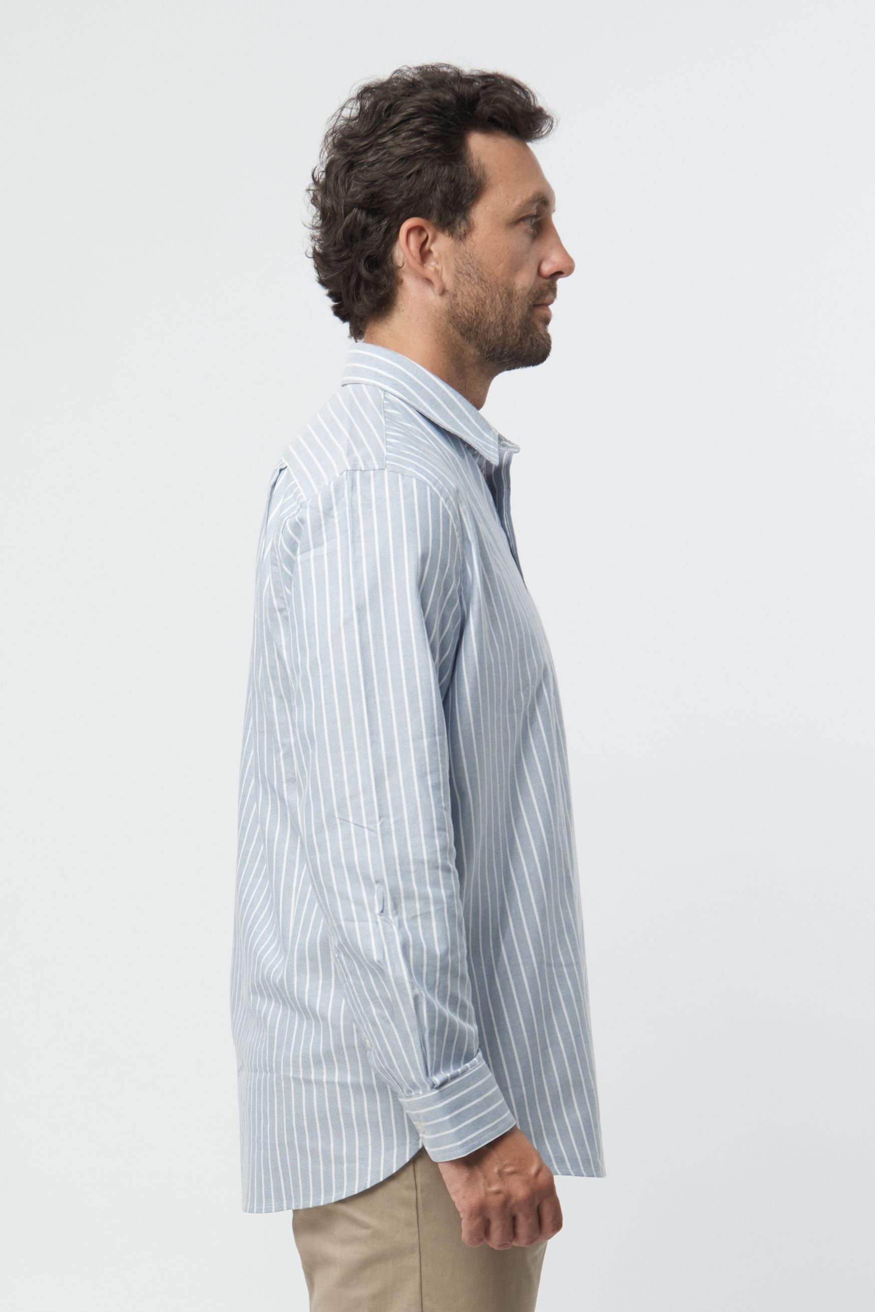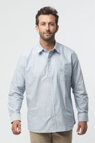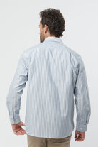 Mens Cotton Stripe Shirt - Denim Blue/White