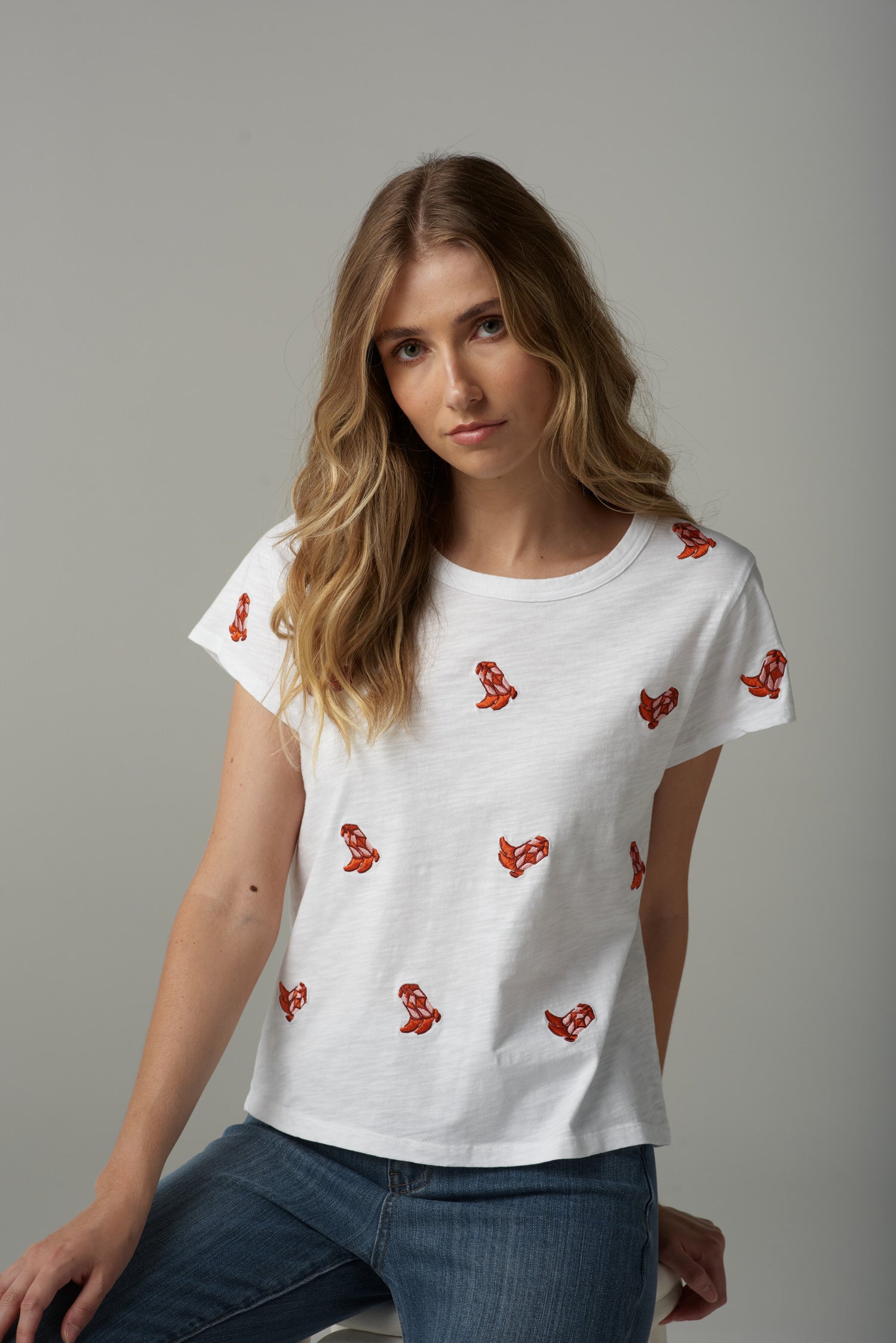 Embroidered Boots Cotton Tee - White
