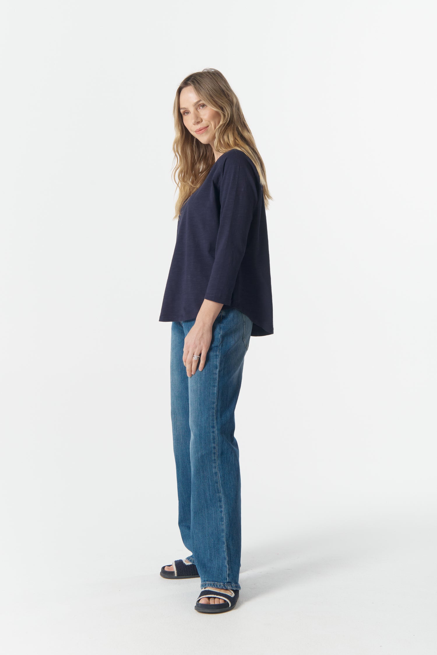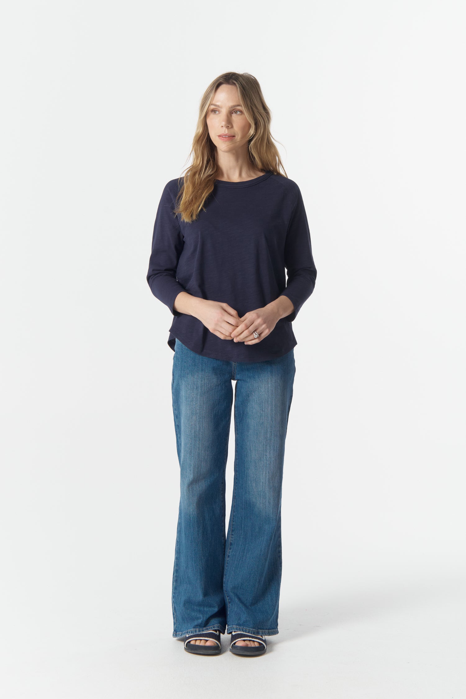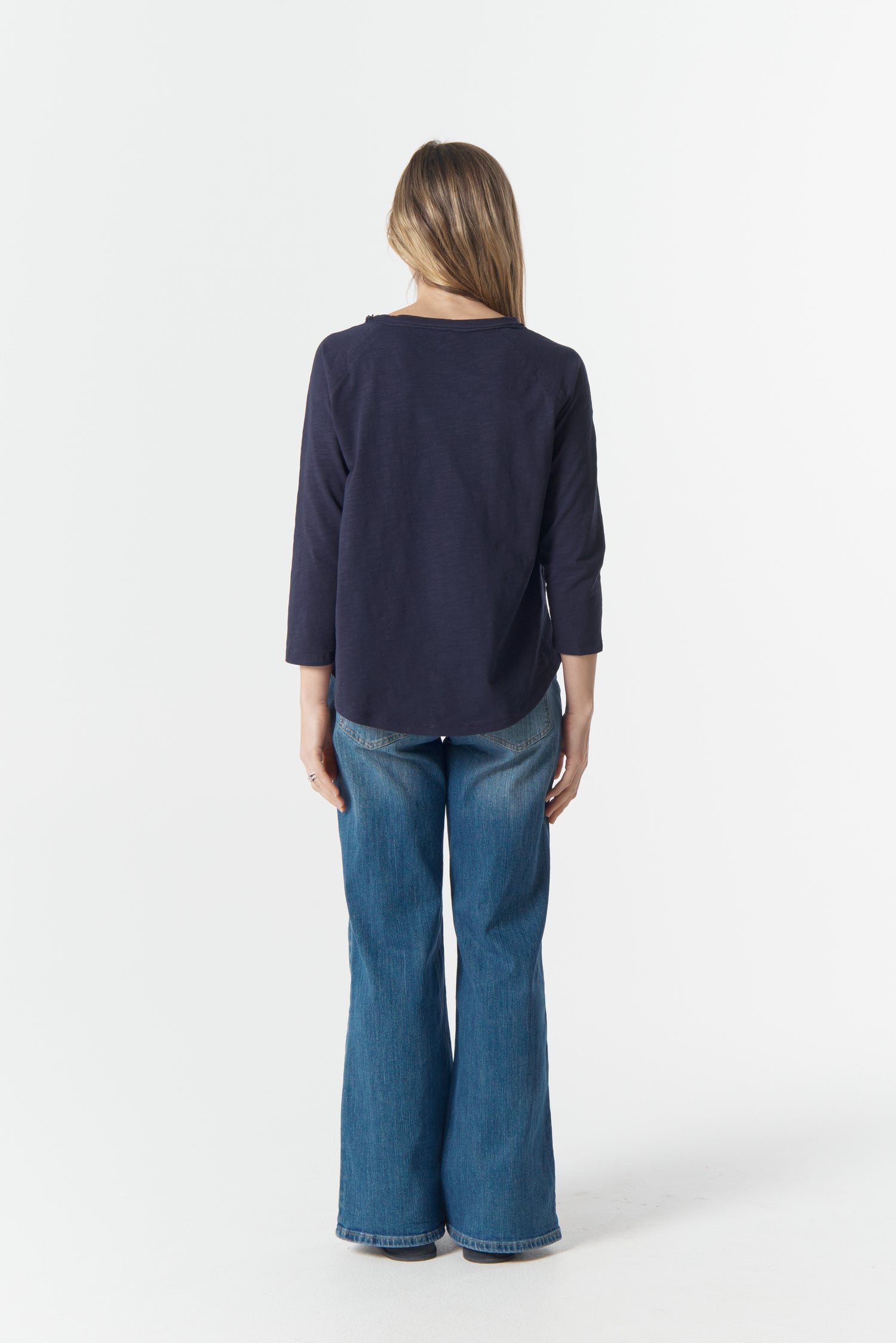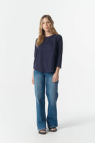 Cotton 3/4 Sleeve Tee - Parisian Navy