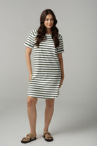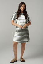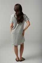 The Stripe Cotton Tee Shirt Dress - White/Fairway Green