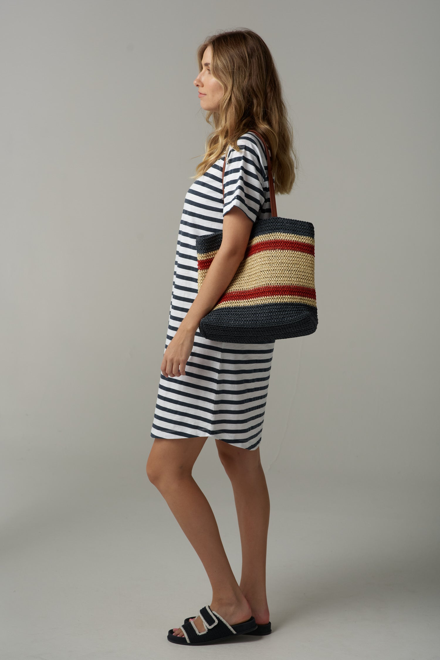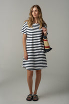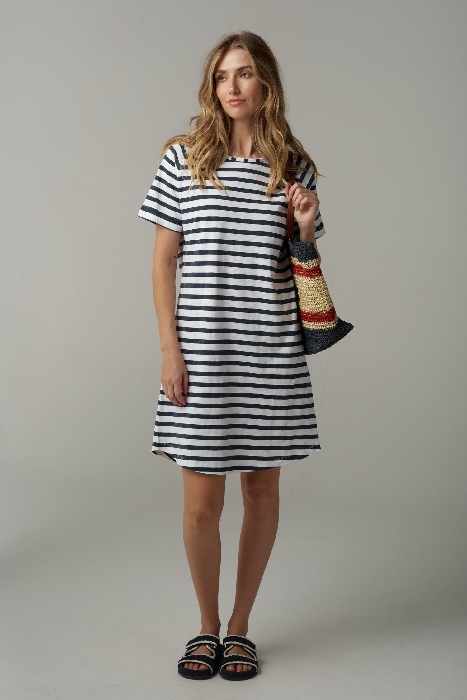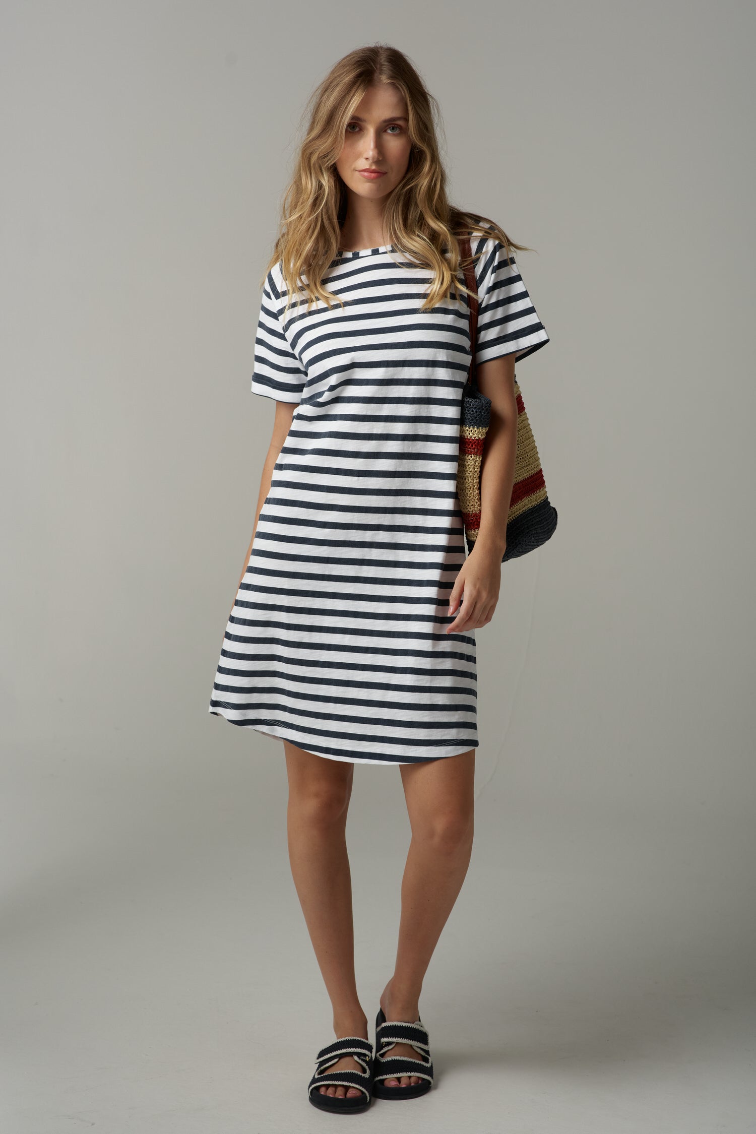 The Stripe Cotton Tee Shirt Dress - White/Parisian Navy