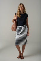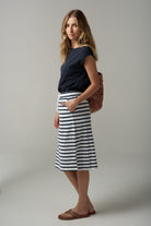Folk Cotton Side Split Skirt - White/Parisian Navy