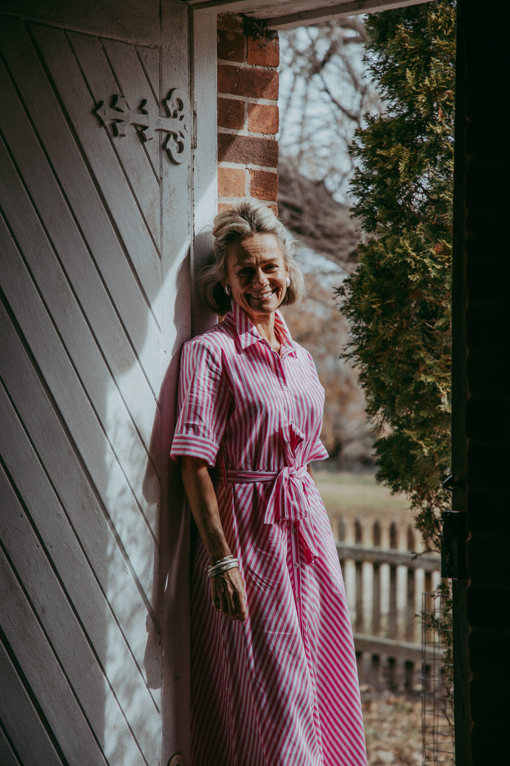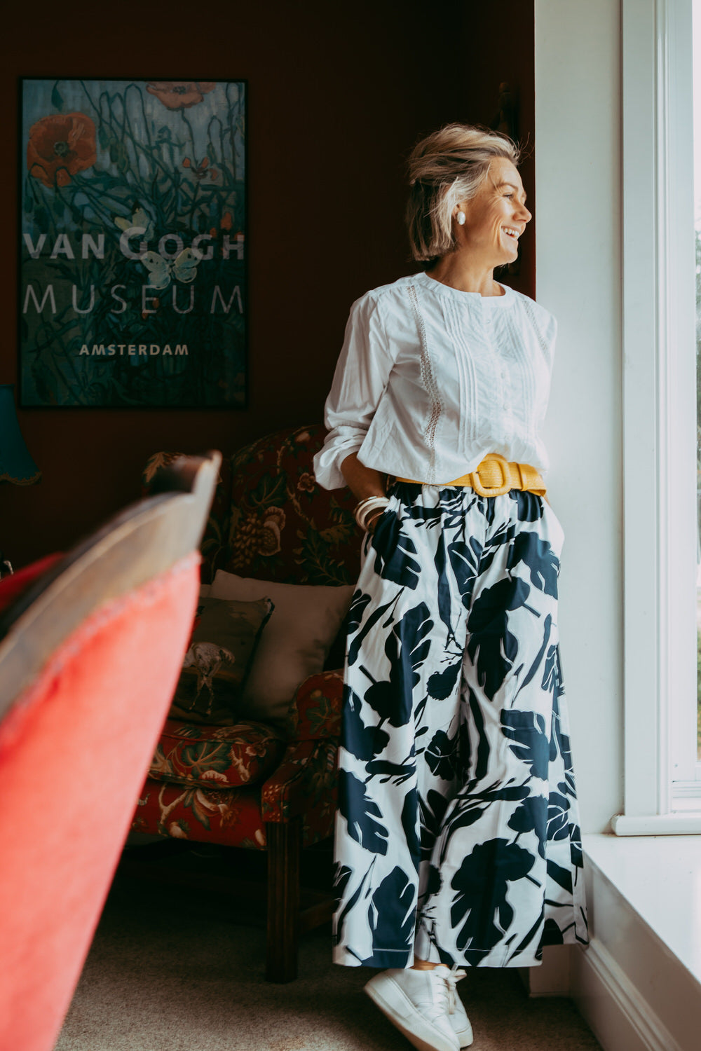 Mum, farmer, champagne drinker, and colour lover, Tina Skipper wears our new summer collection with ease. Cotton comfort and countryside calm, styled her way.