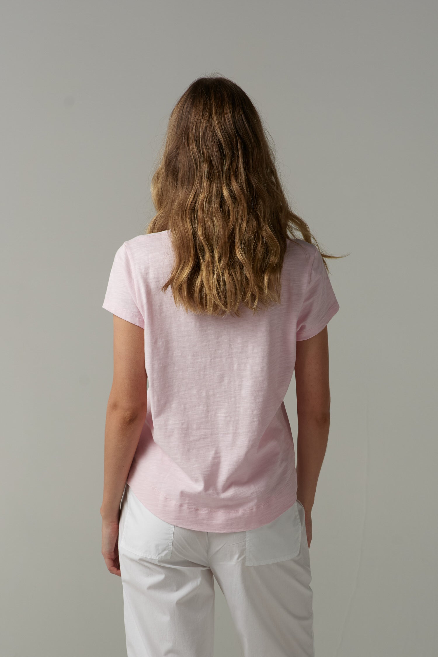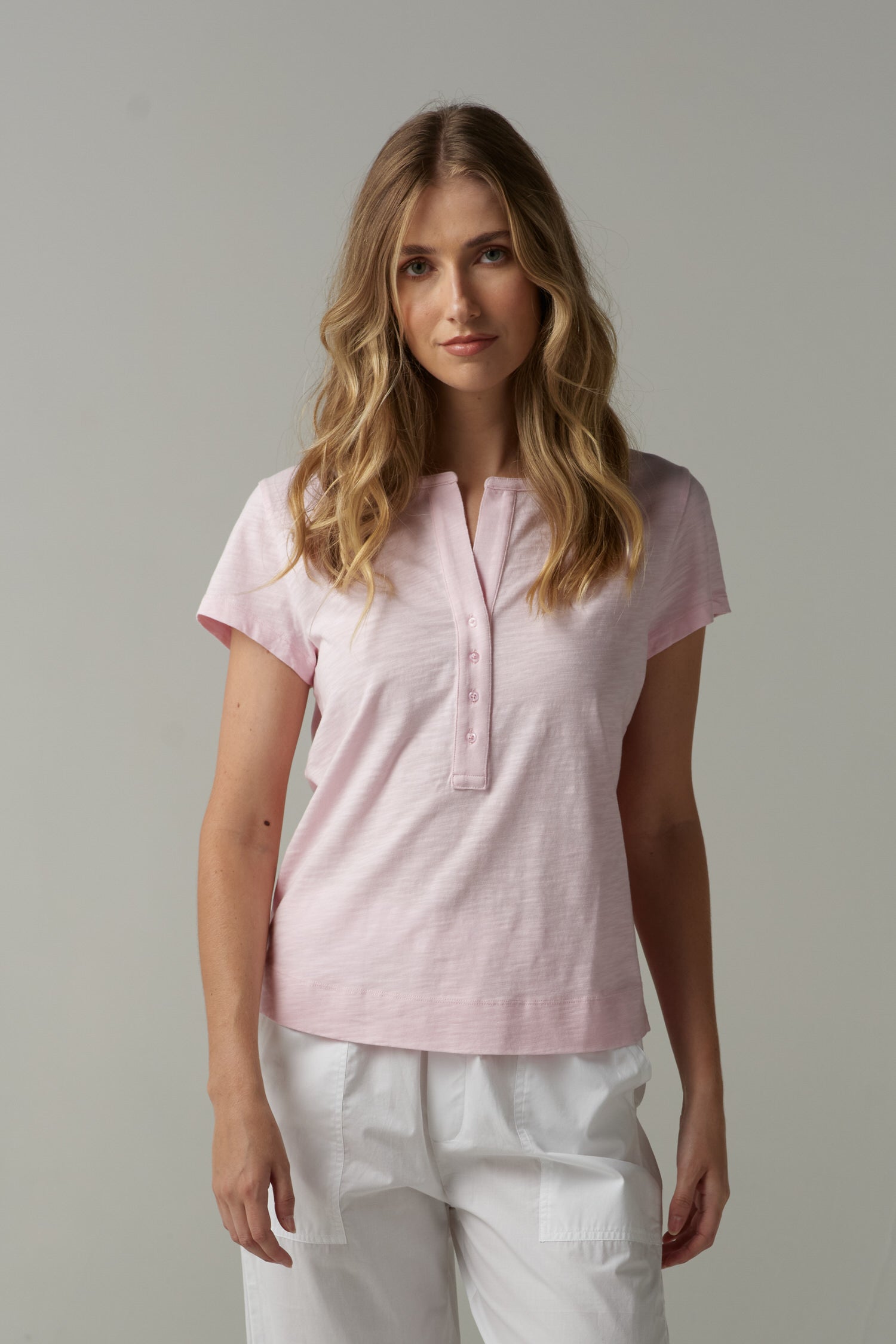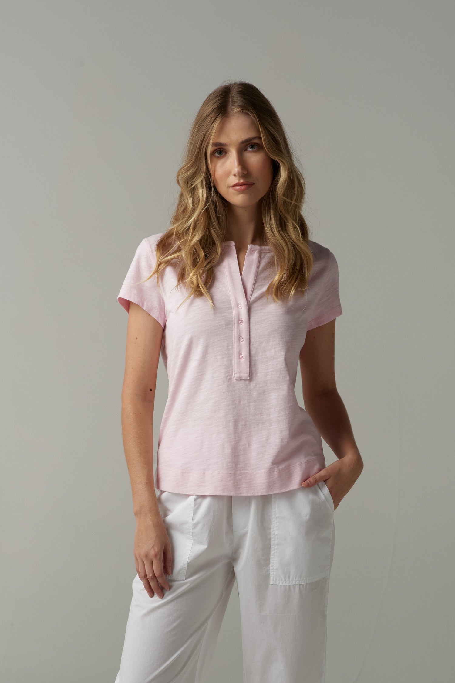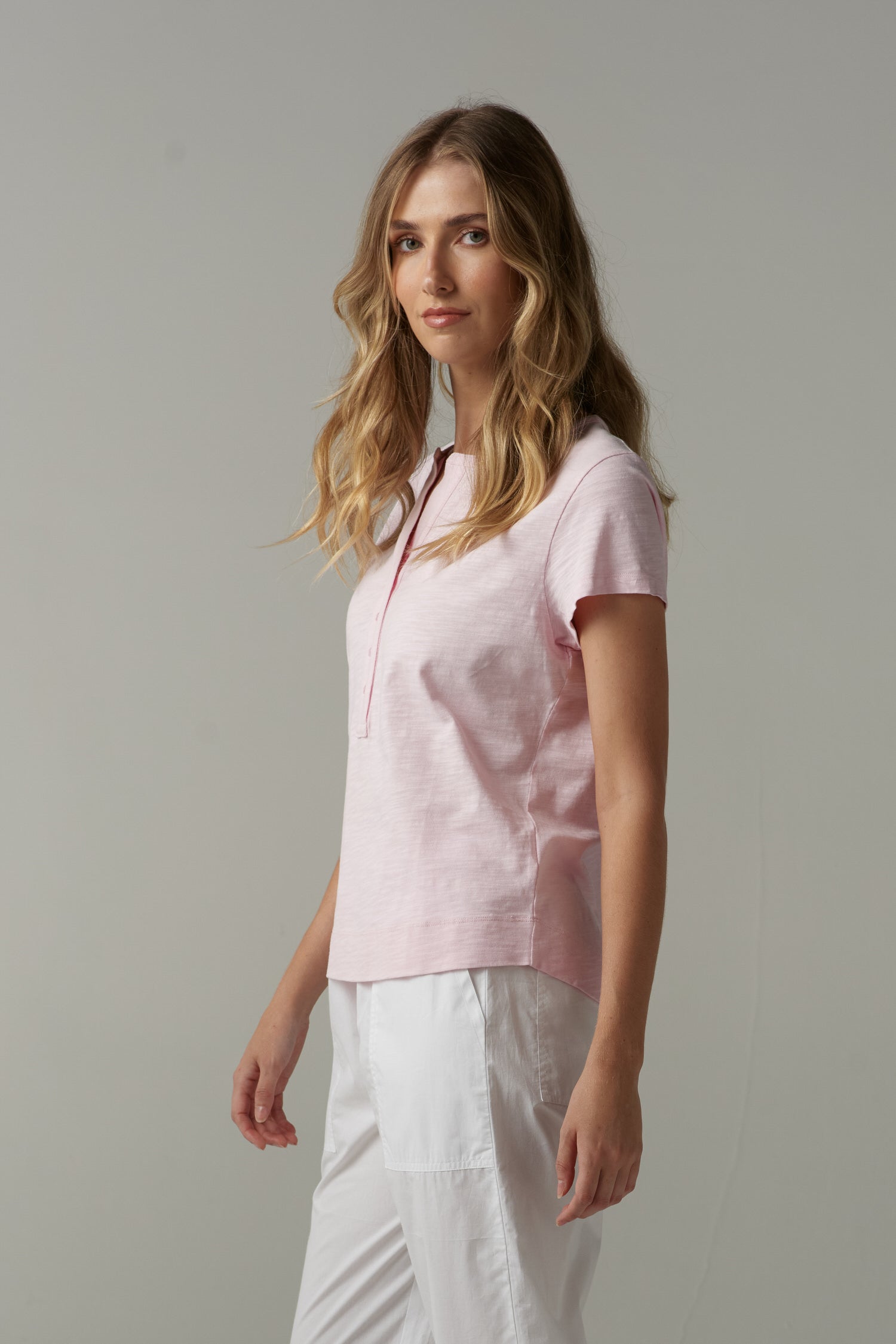 The Henley Neck Cotton Tee Shirt - Pink Touch