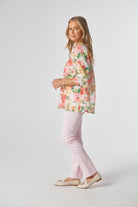 Golden Cotton Trapeze Blouse - Blurred Floral
