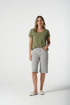 The Everyday Cotton Roll Cuff Tee in sage green is crafted from 100% pima cotton jersey for a soft, premium feel. With a wide round neckline, curved hem and rolled sleeve cuffs, it’s an easy everyday staple that works perfectly with denim, shorts or skirts.
