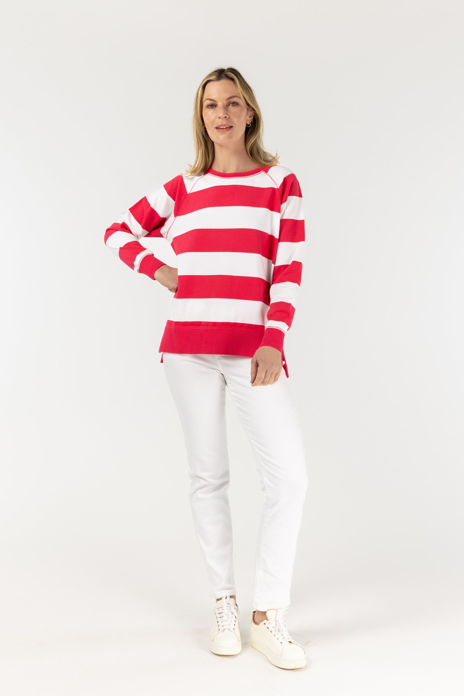 A much-loved essential, our Stripe Rugby Sweatshirt. This style features a round neckline, flattering raglan sleeve and is a relaxed style.