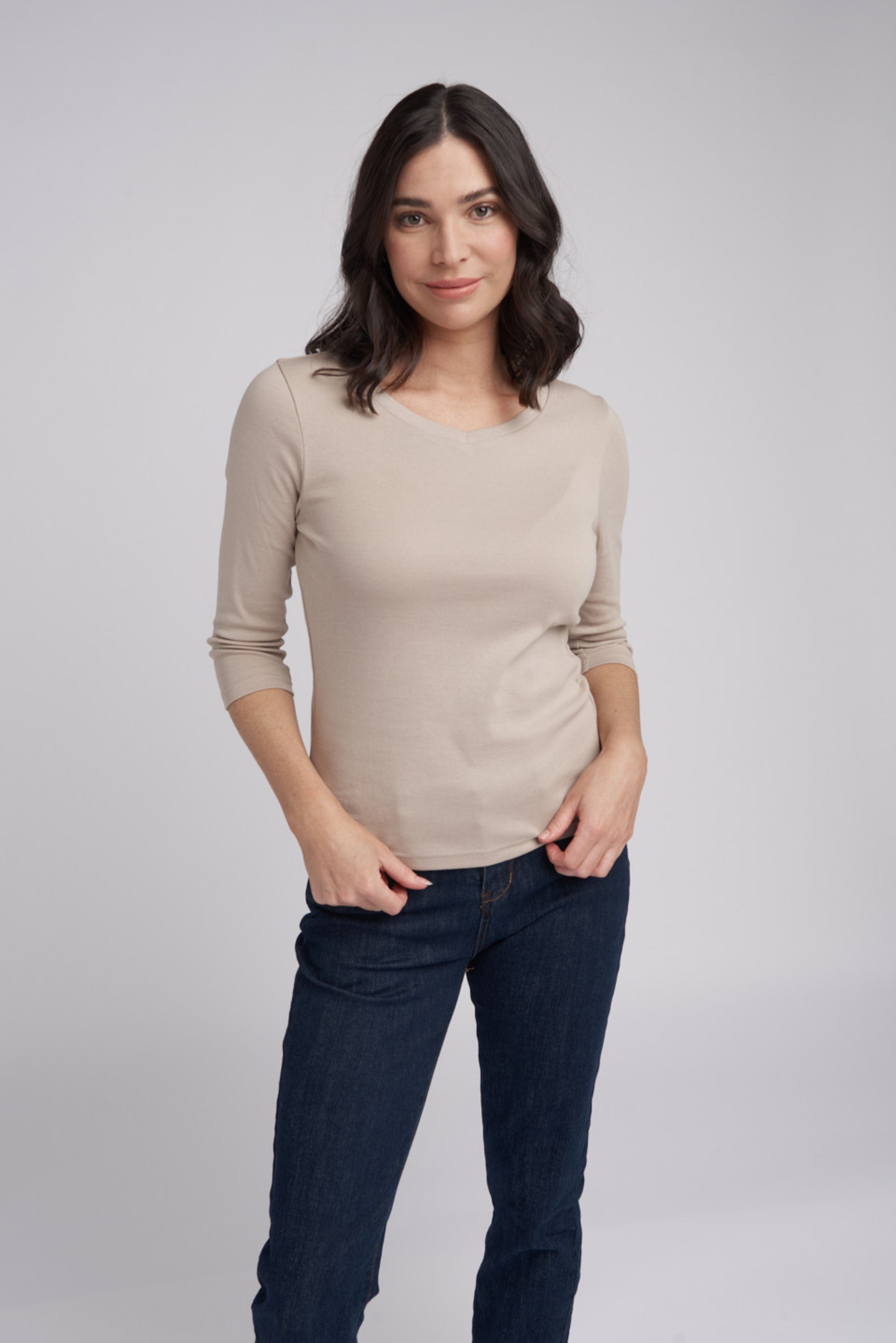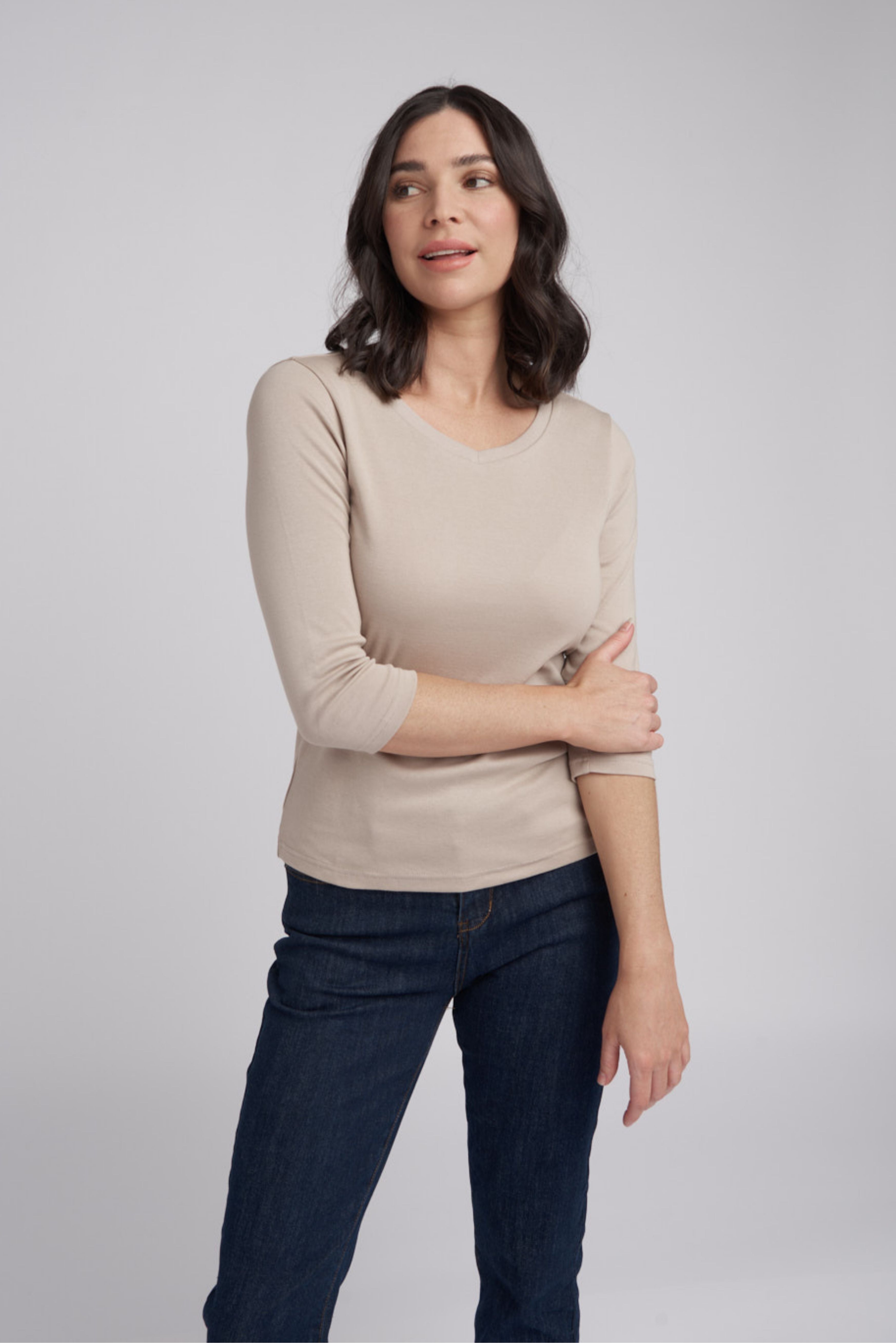 Full marks for a t-top which looks good however you wear it, t combineucked in or worn over pants or skirts. A great colour for mix and match.