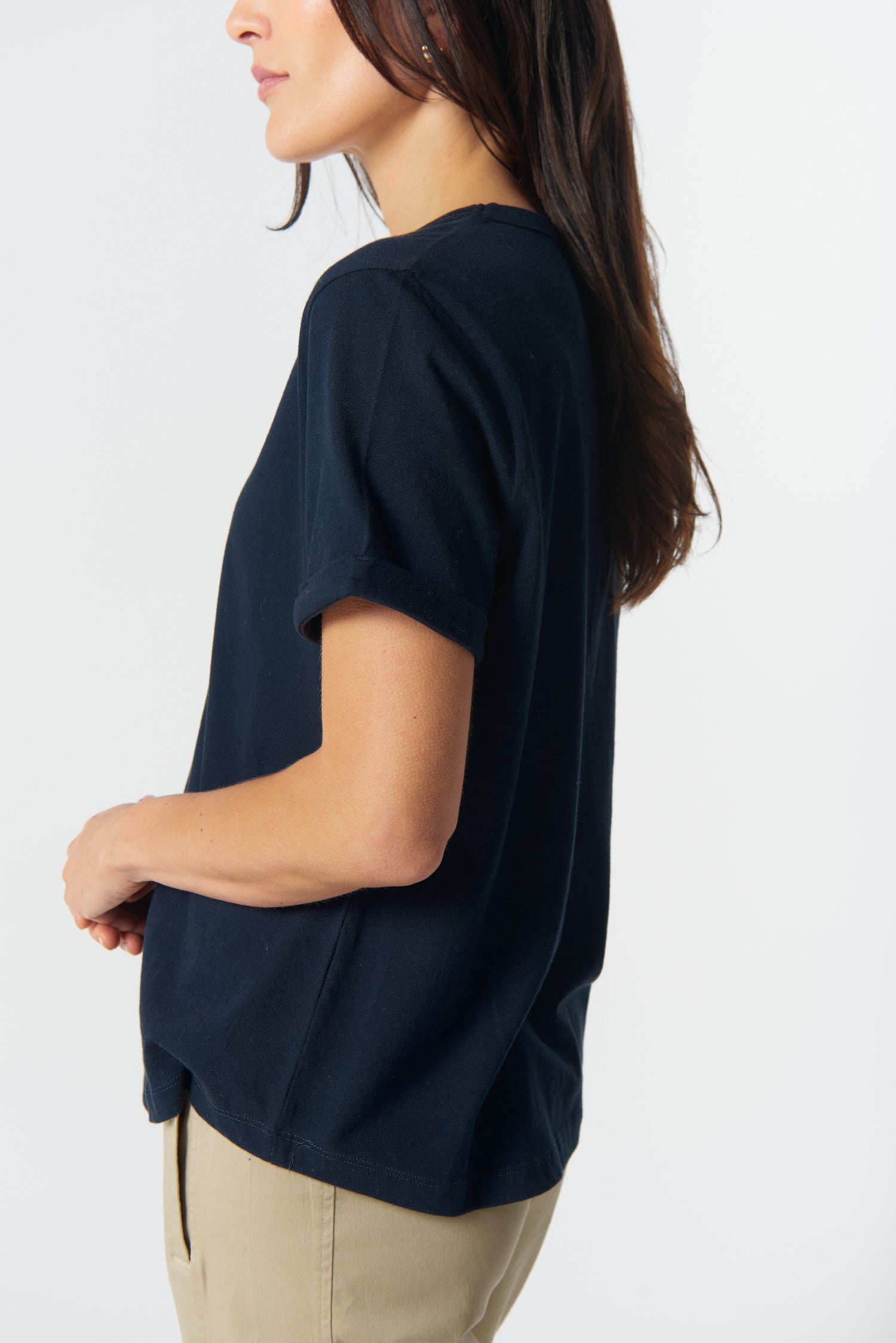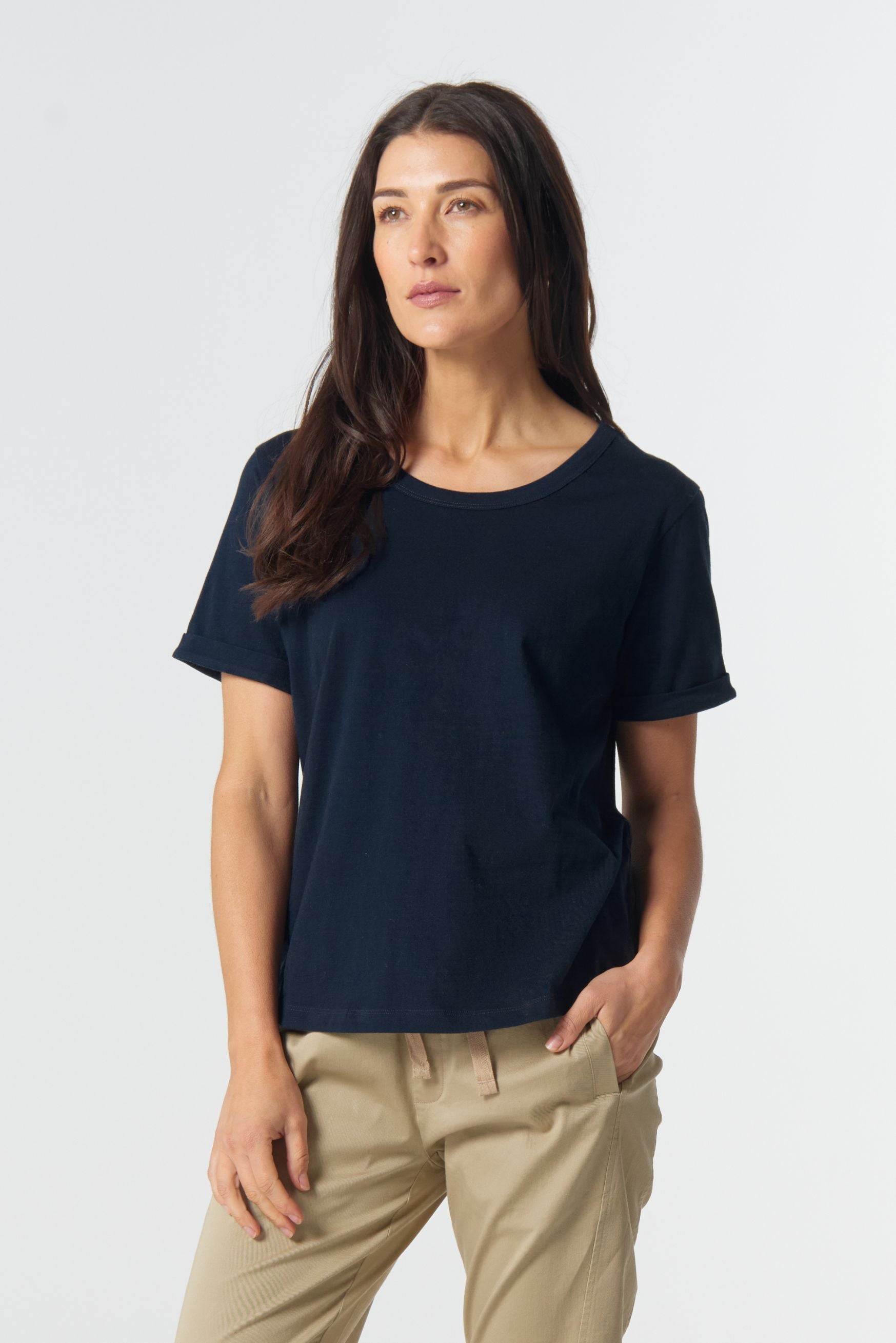 Everyday Cotton Roll Cuff Tee - Dark Navy