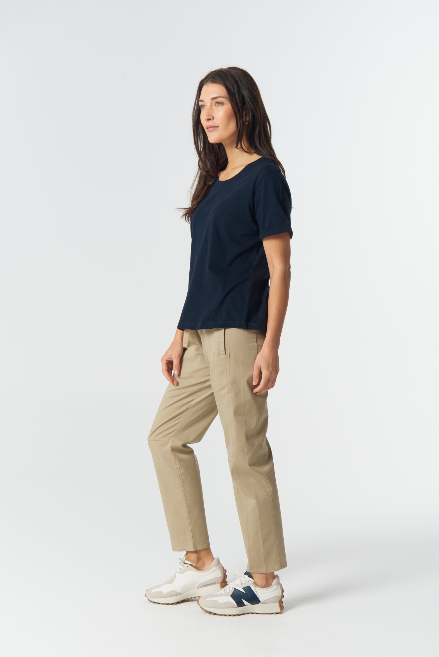 The Everyday Cotton Roll Cuff Tee in dark navy is made from 100% Australian pima cotton jersey for a soft, premium feel. Designed with a wide round neckline, curved hem and rolled sleeve cuffs, it’s an easy go-to tee that pairs effortlessly with everything from denim to skirts.