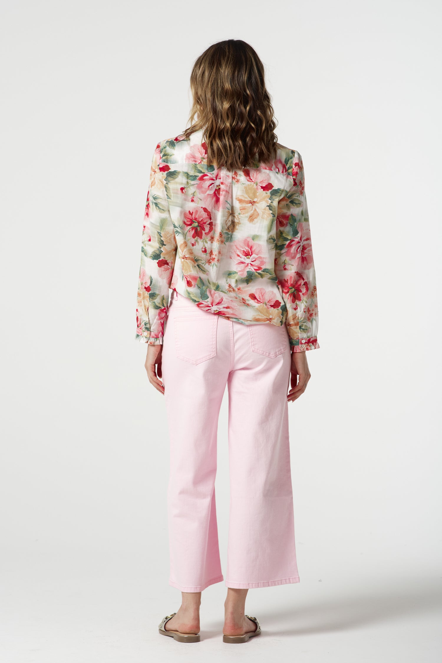 Our 5 Pocket Crop Wide Leg Jean in pale pink is made from our signature cotton fabric with a touch of stretch for all-day comfort and ease. The wide-leg, cropped cut offers a fresh, flattering shape, perfect for pairing with crisp shirts, relaxed knits, blouses or your favourite tees.
