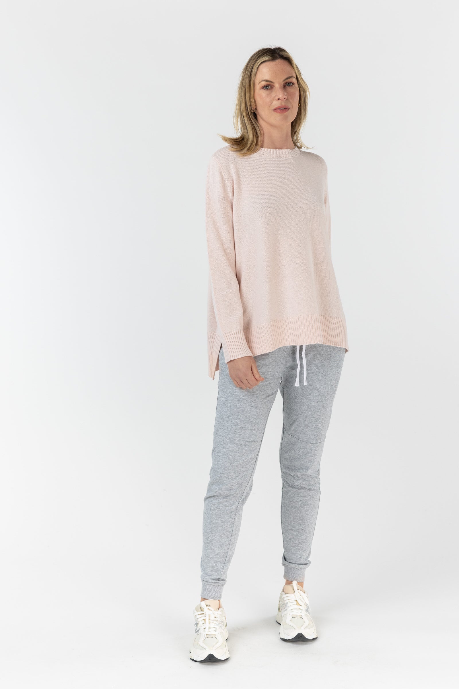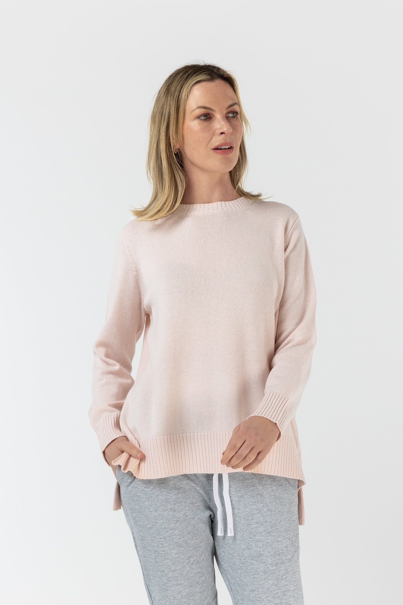 Rib Knit Crew Neck Jumper - Champagne Pink
