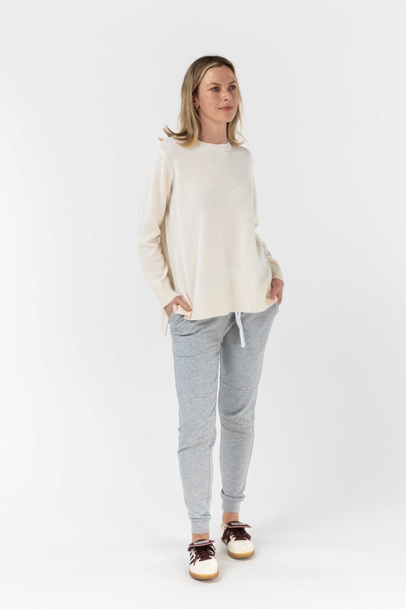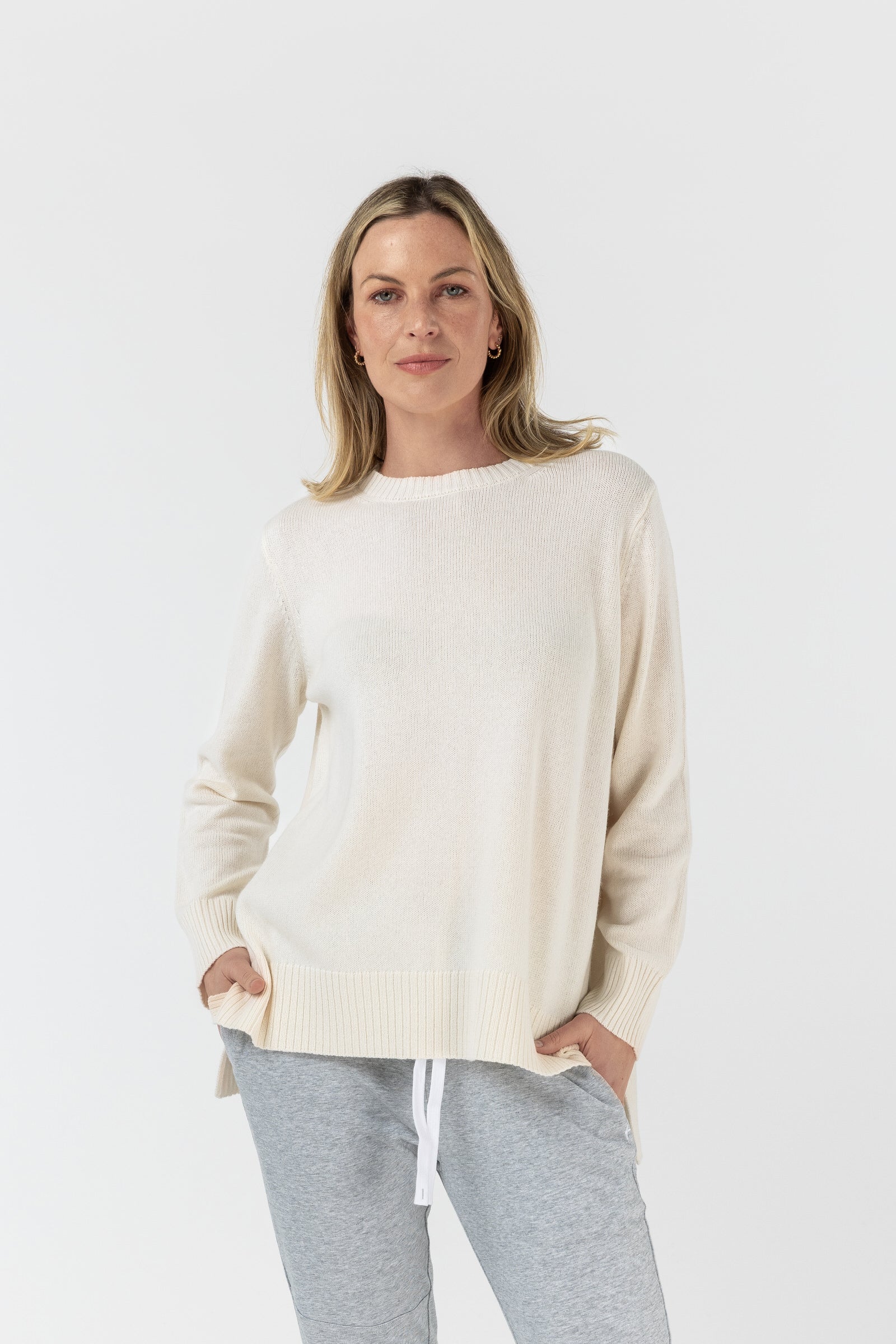 Rib Knit Crew Neck Jumper - White Rabbit