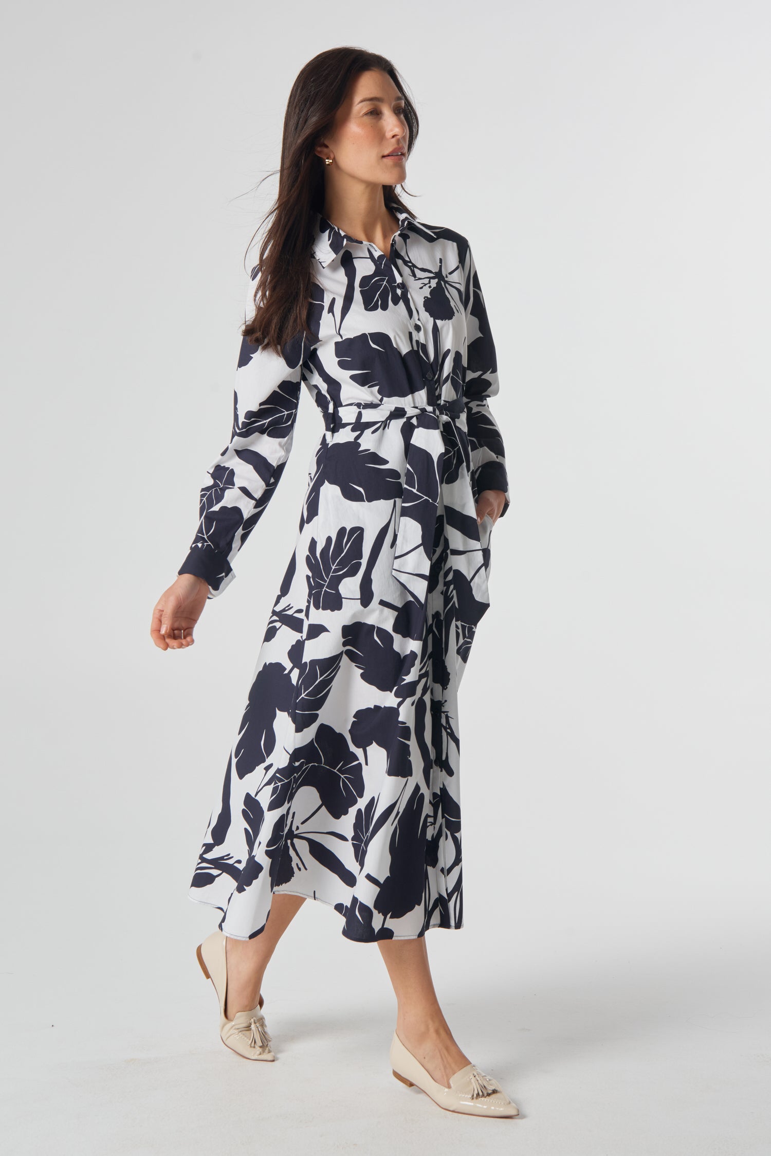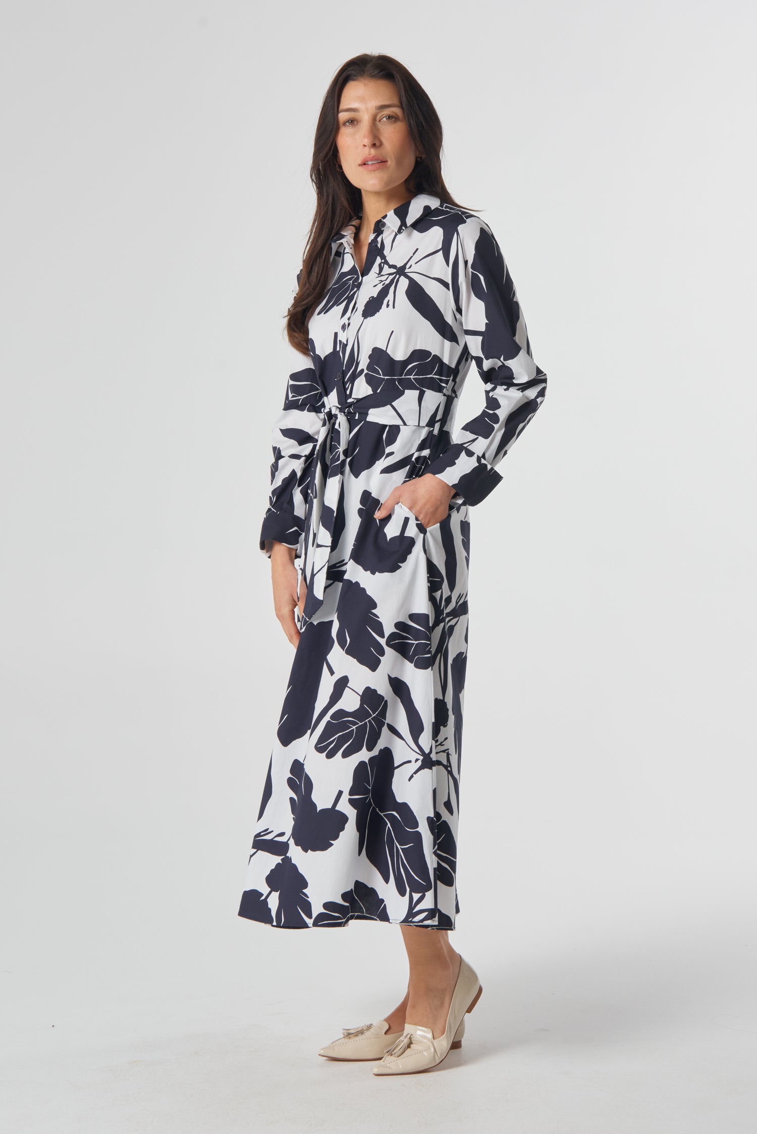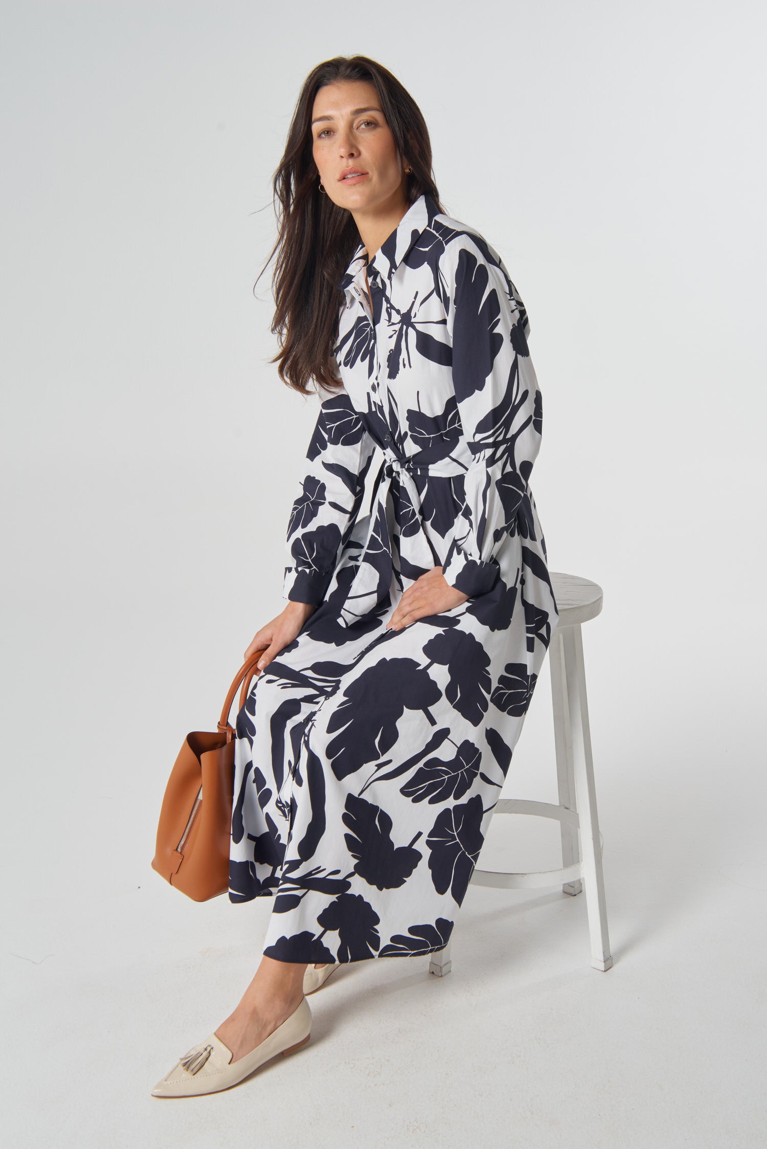 Our signature A-line belted dress returns in a fresh Block Leaf print, crafted from 100% breathable cotton for all-day comfort. Inspired by the leaves of the land, it’s a versatile style you can wear cinched at the waist with the self-fabric belt or your own belt styling, with long sleeves that roll up for a more relaxed look.