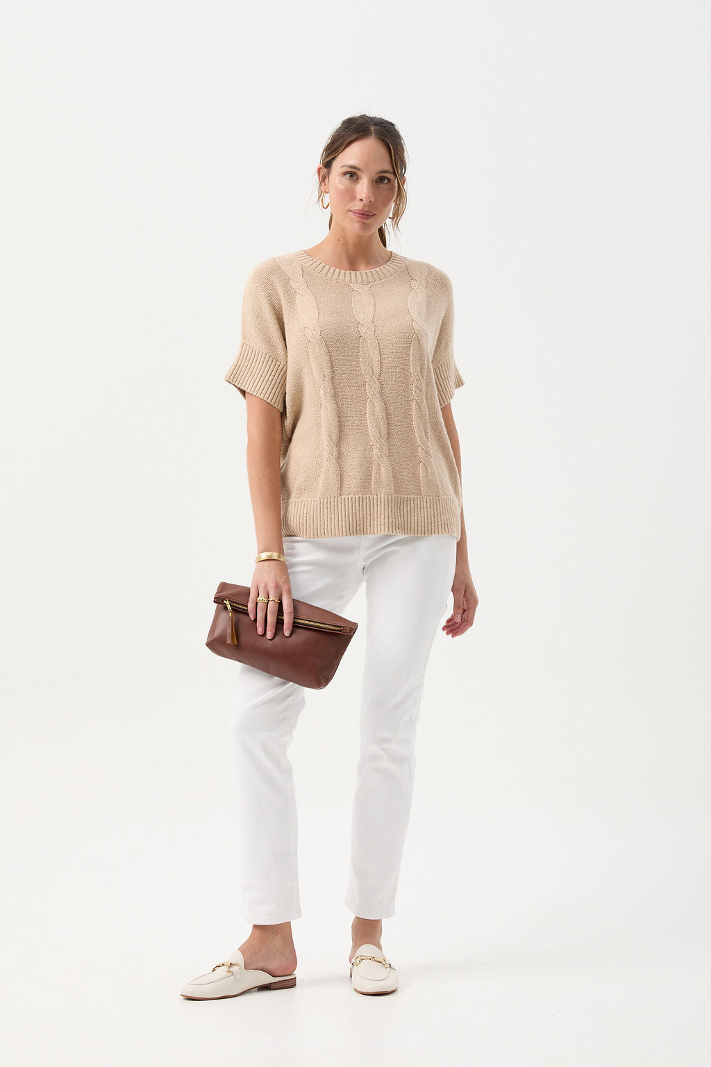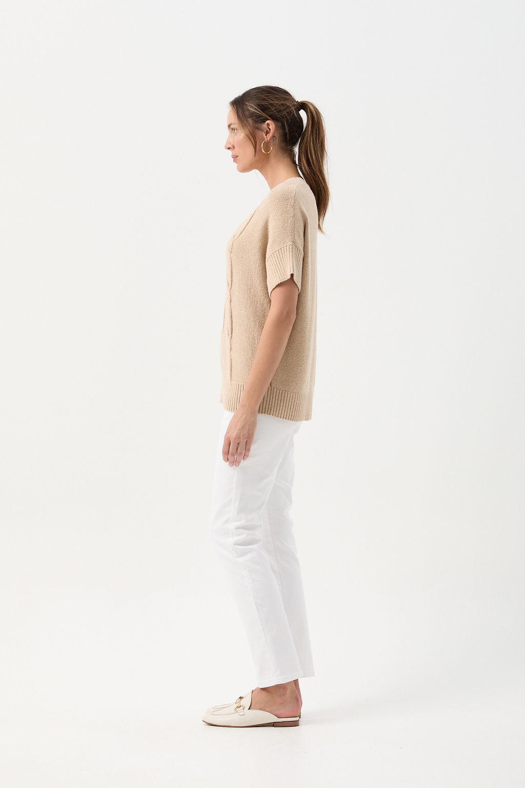 Cotton Blend Cable Knit Vest - Bisque