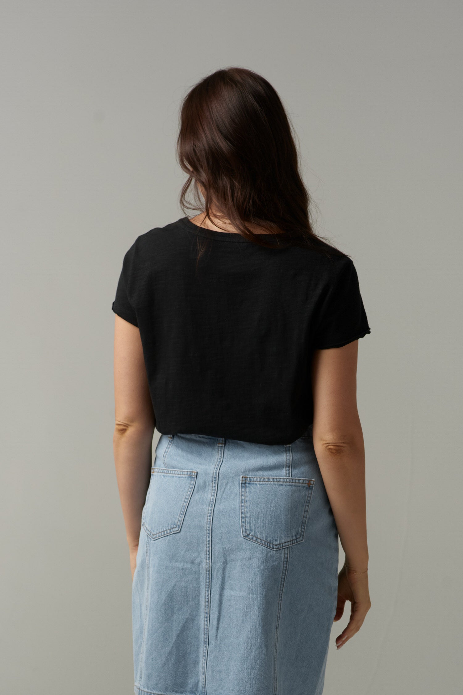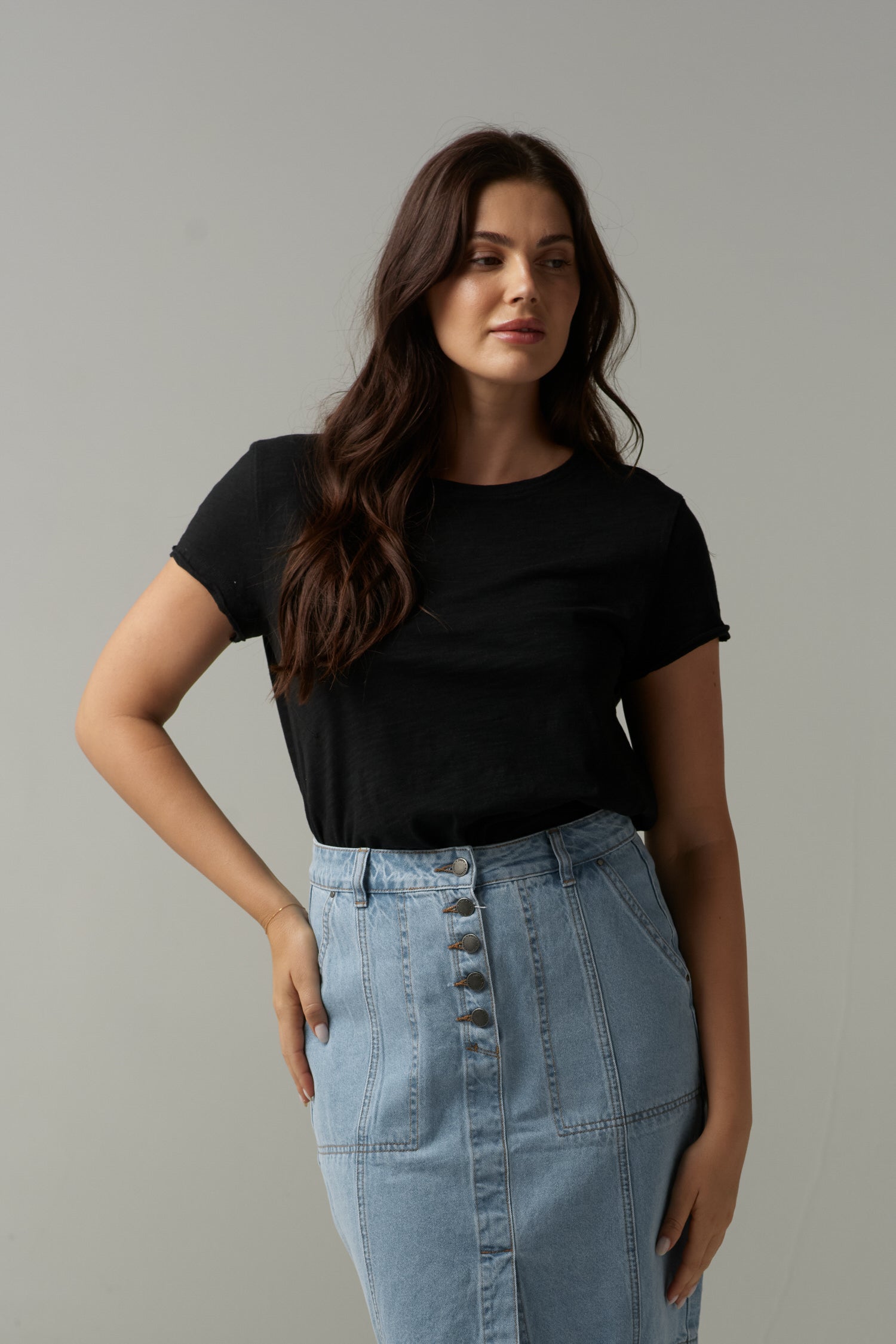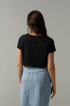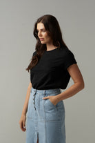 Front Split Cotton Tee - Black