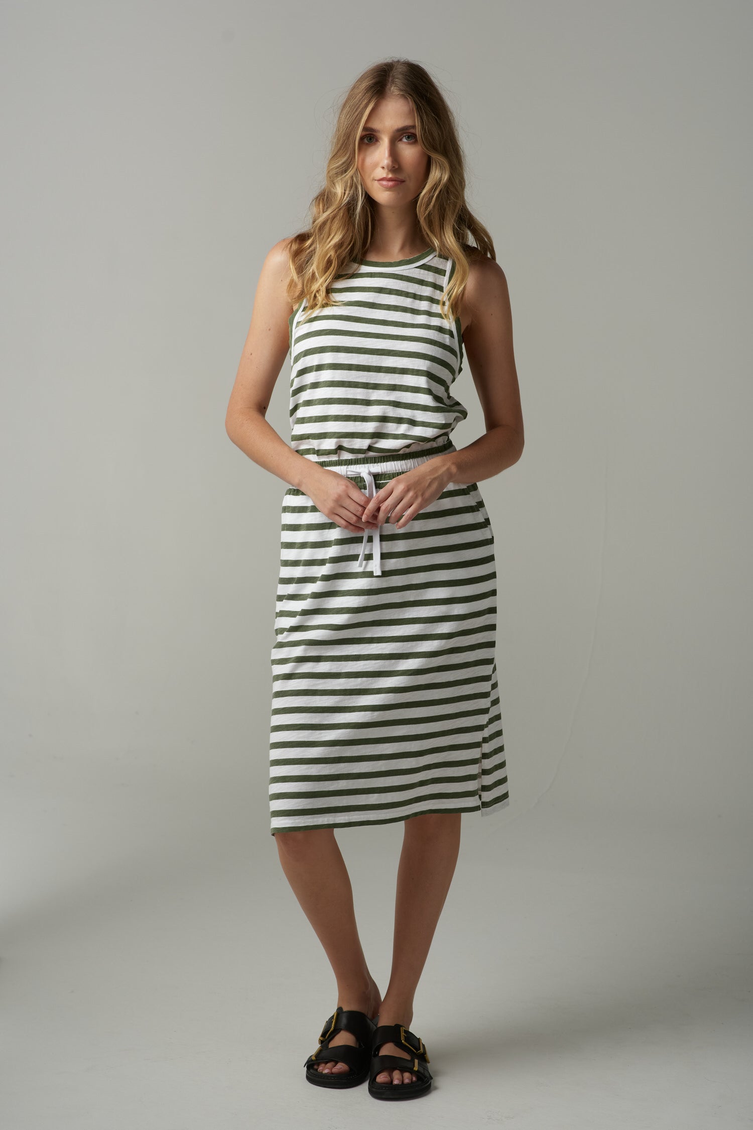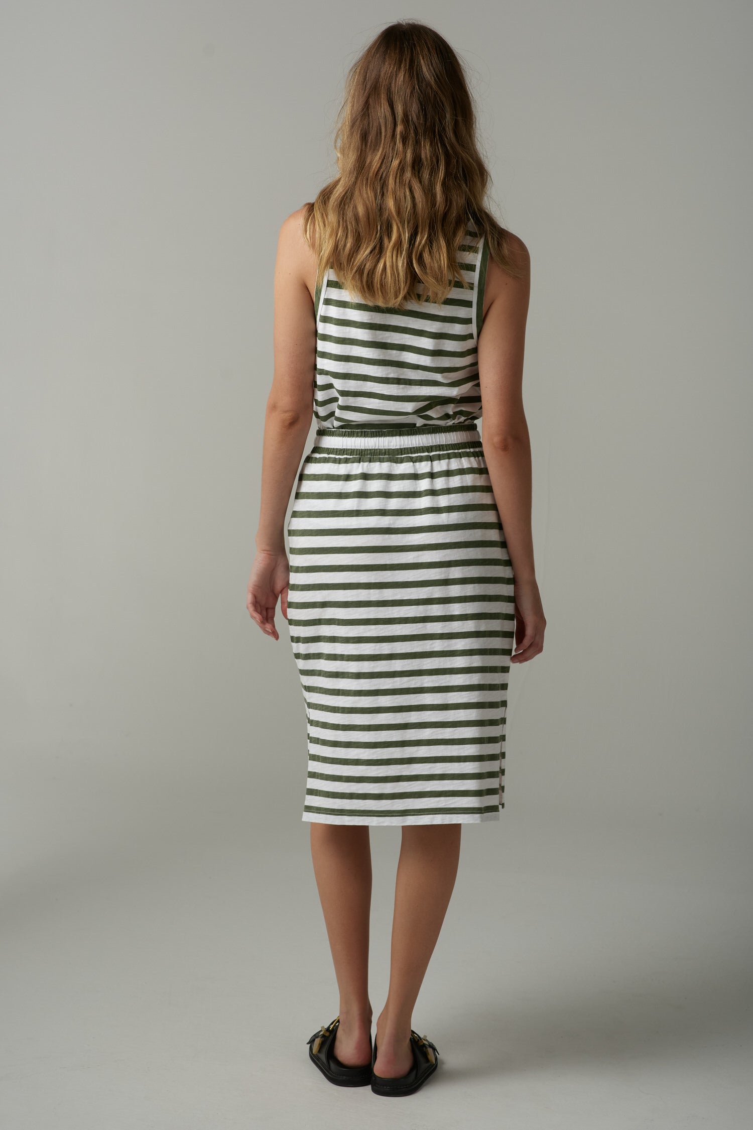 Folk Cotton Side Split Skirt - White/Fairway Green