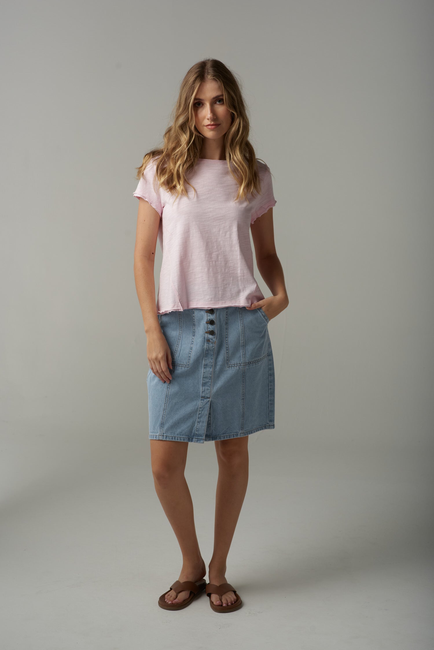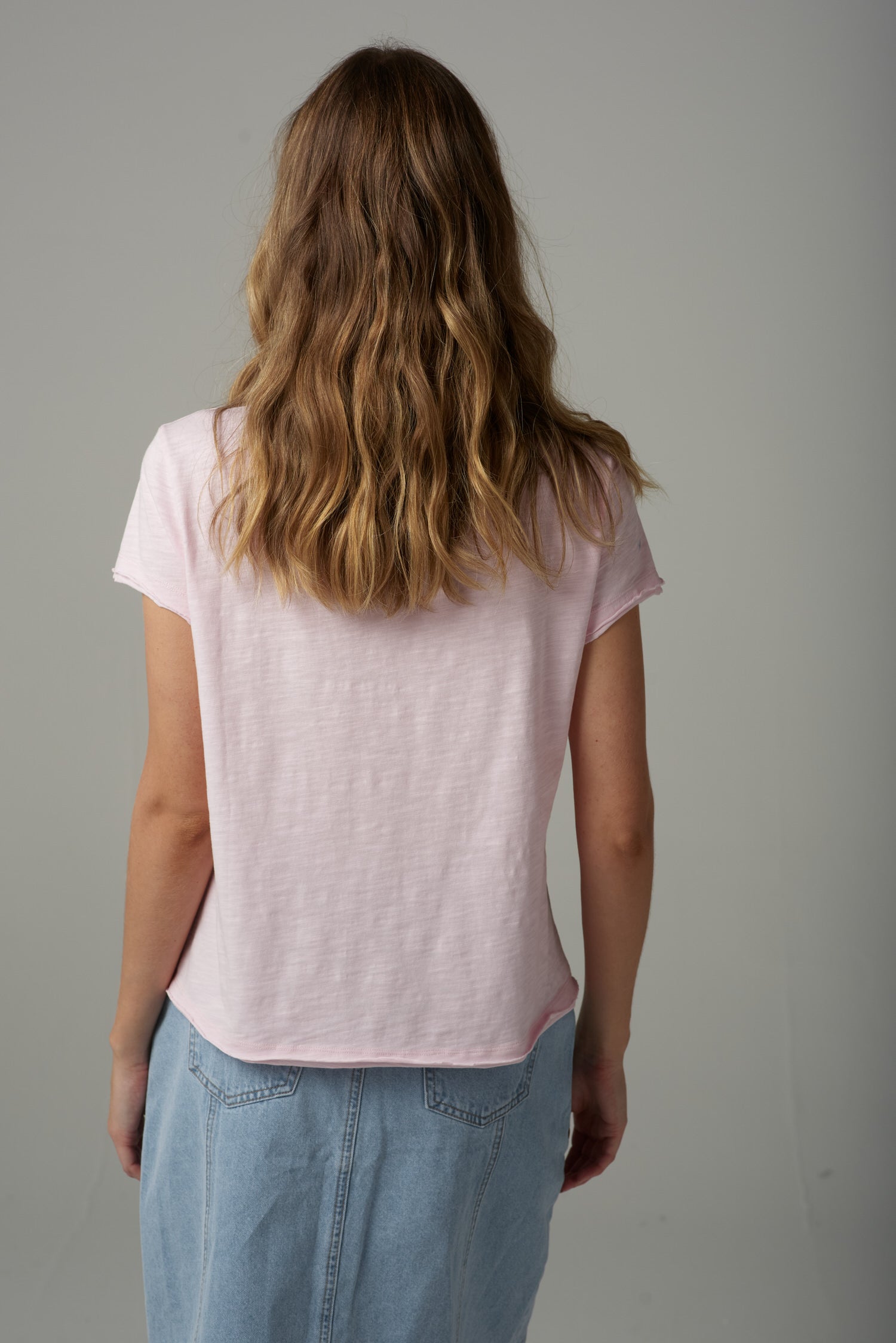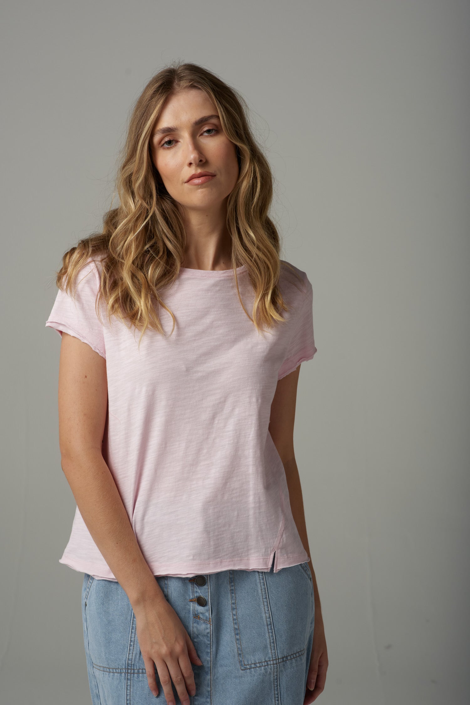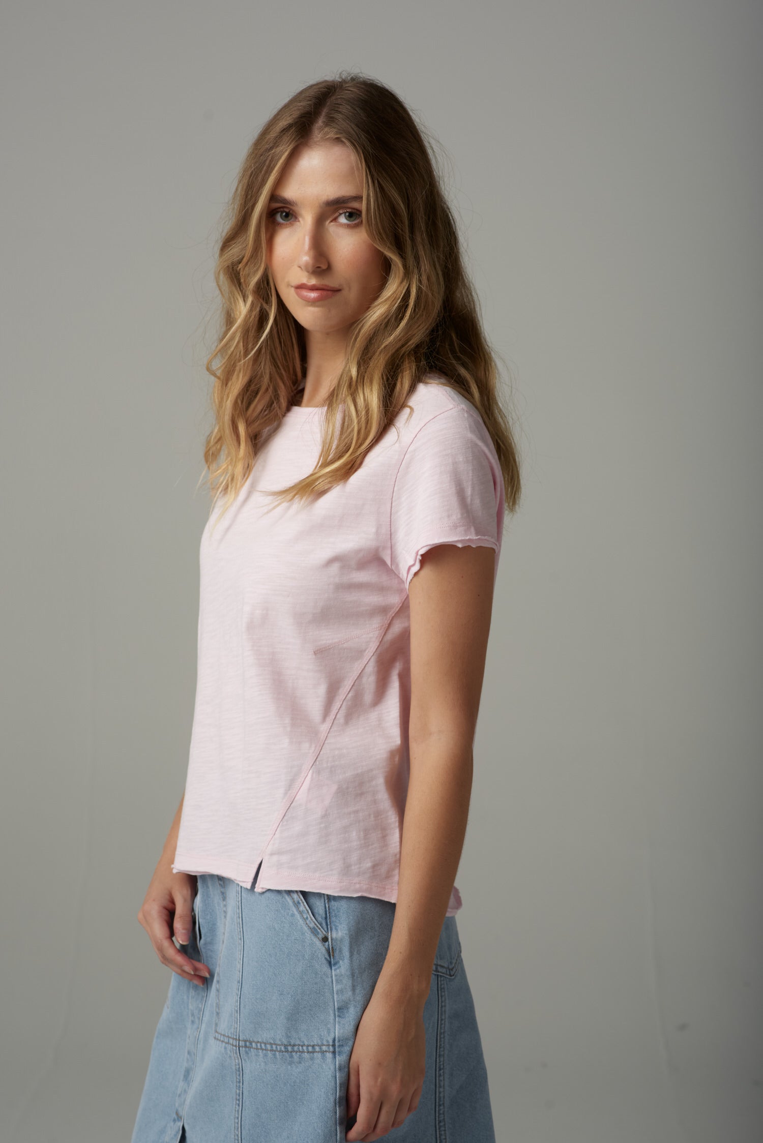 Front Split Cotton Tee - Pink Touch
