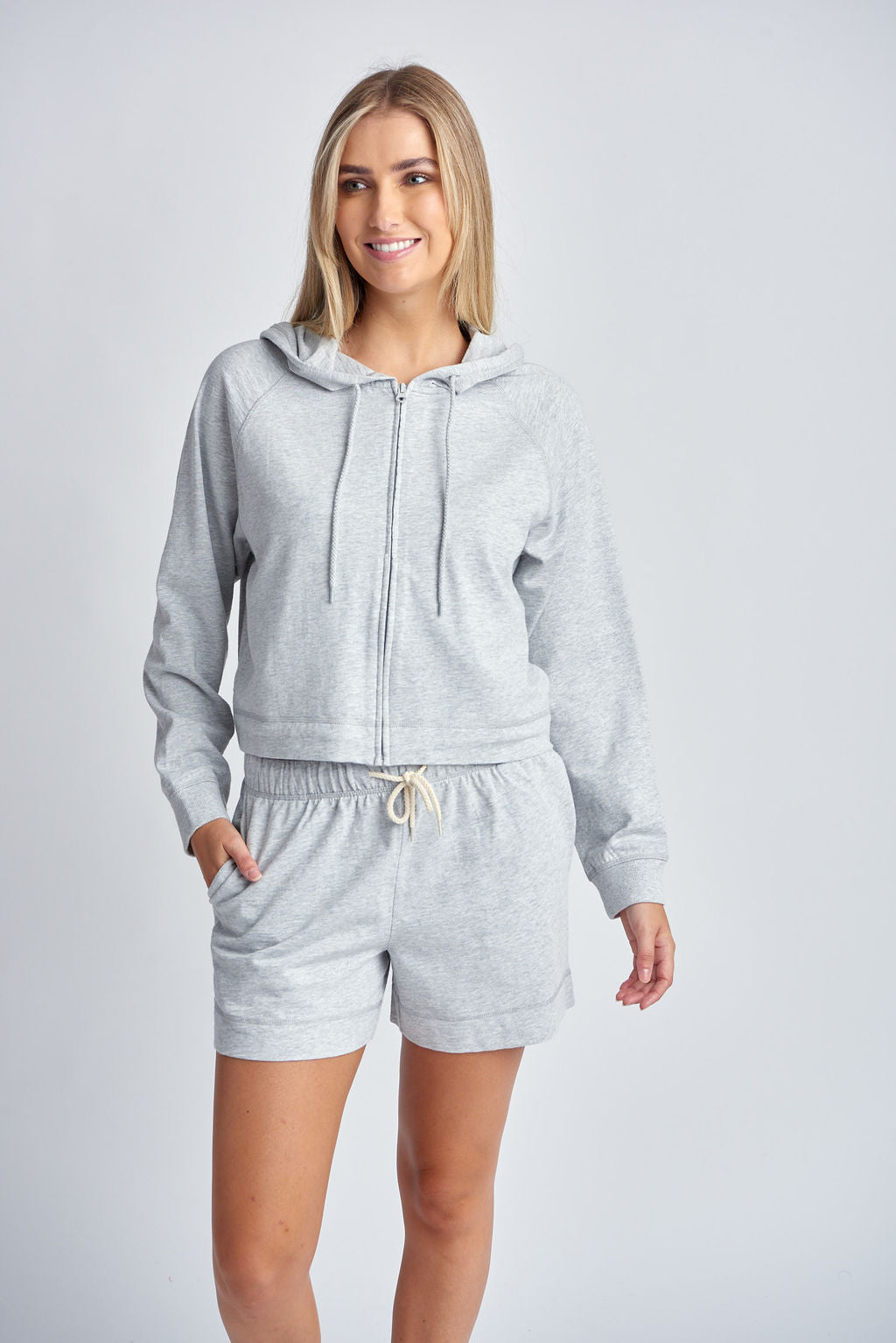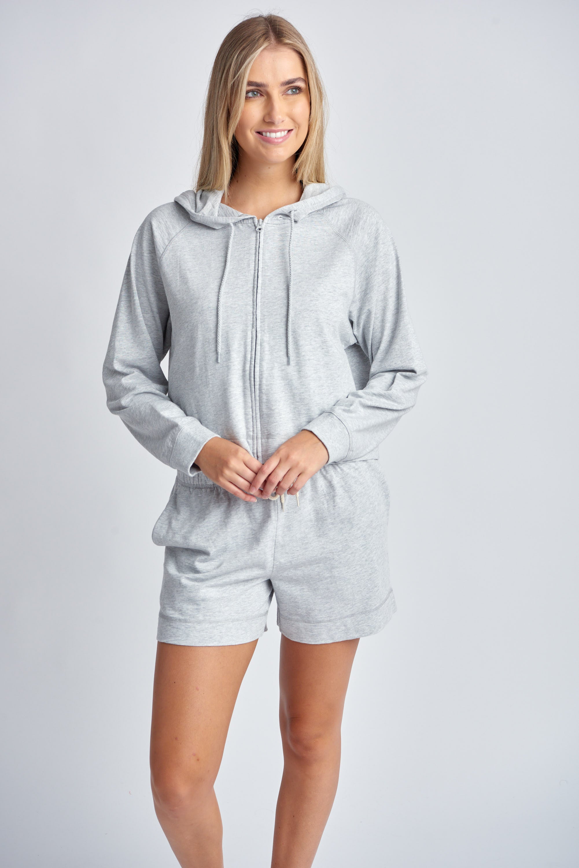 Full Zip Cotton Hoodie - Marle Grey