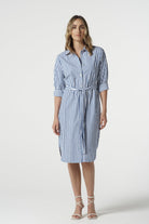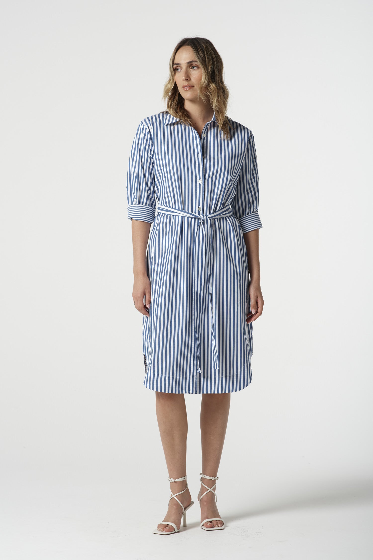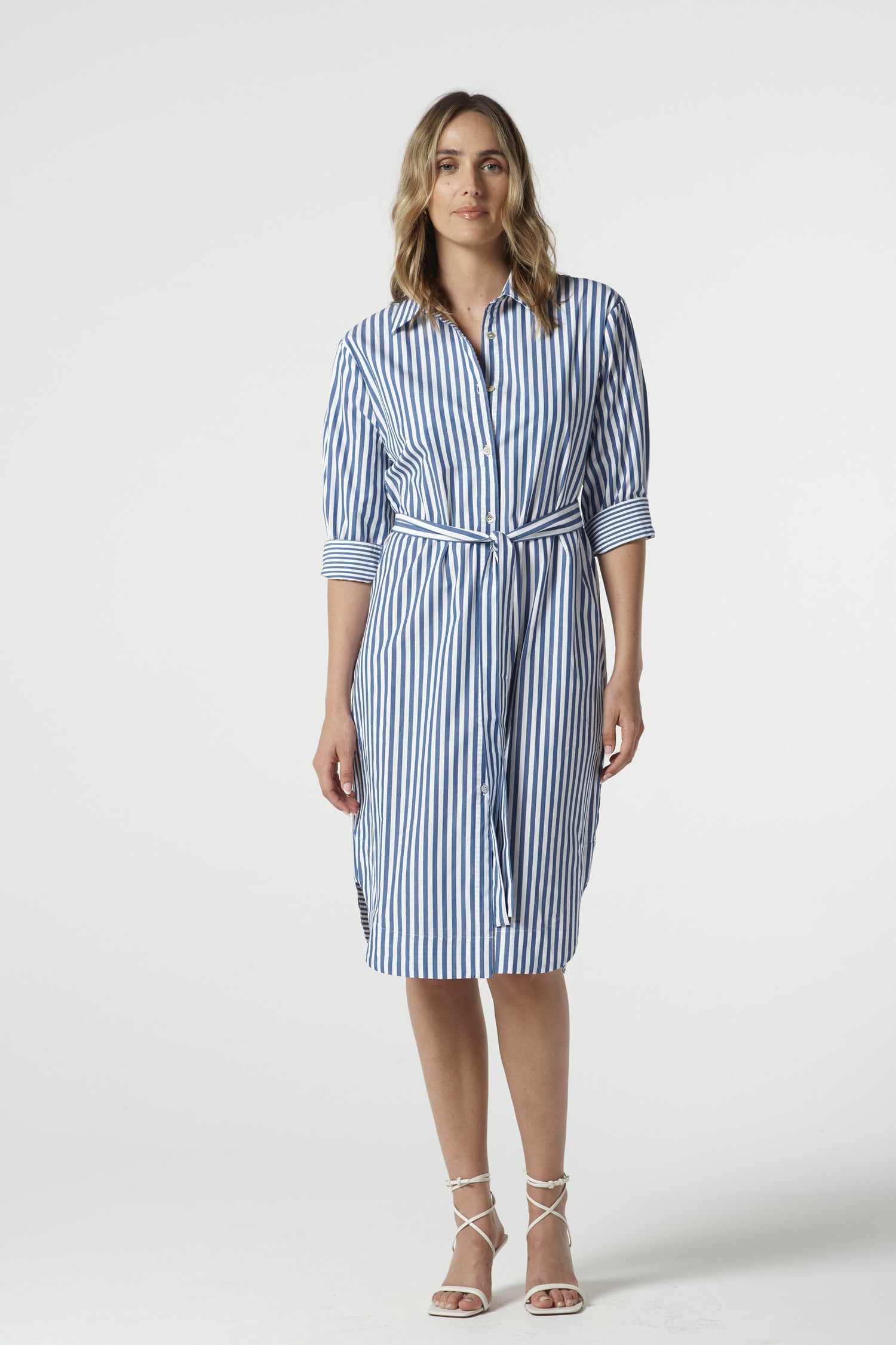 Haven Cotton Shirt Dress - Blue Jasper/White