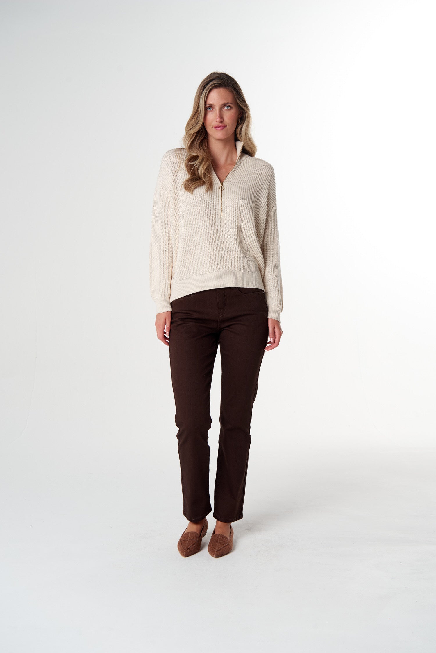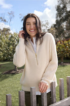 Jillaroo ½ Zip Merino Cotton Jumper - Whipped Cream