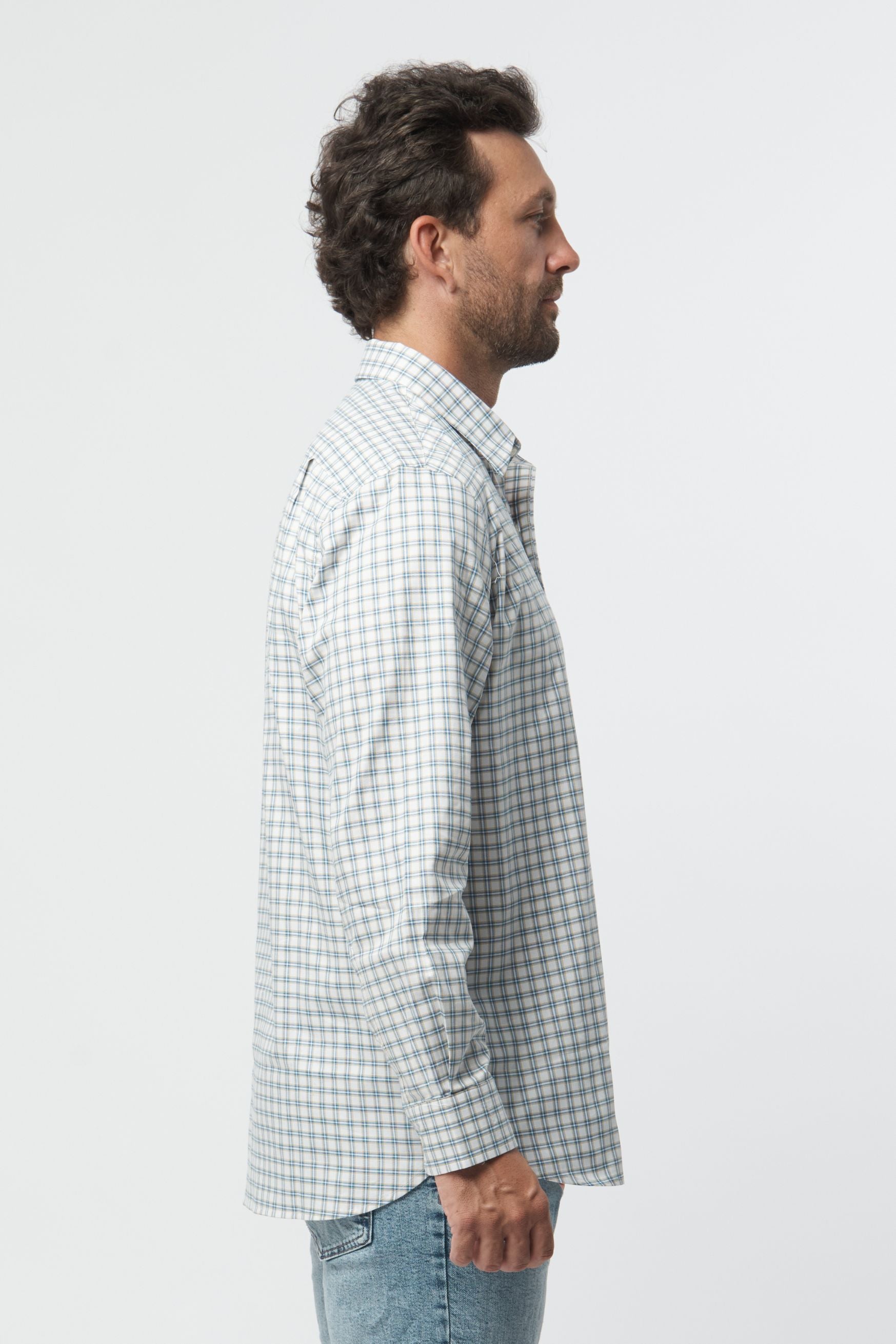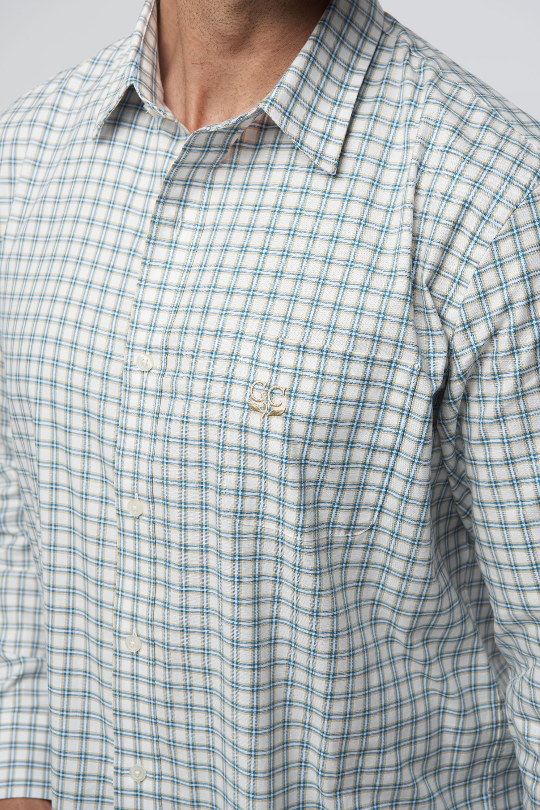 Mens Cotton Check Shirt - Camel/Blue