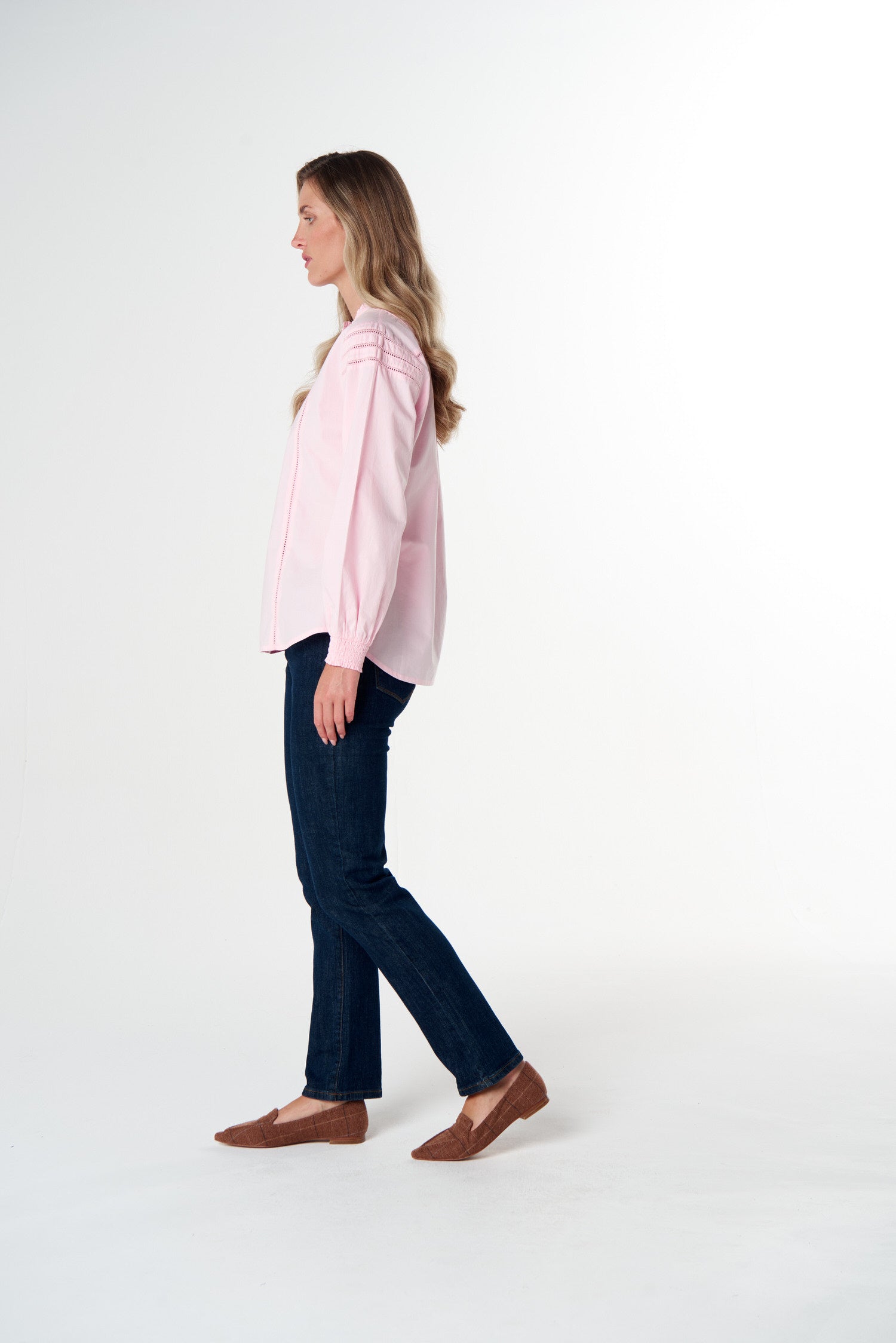 Misty Ladder Detail Cotton Blouse - Pink A Boo