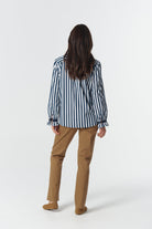 The Sky Frill Neck Cotton Shirt in Dark Navy/White is a beautifully crafted 100% cotton poplin shirt with classic navy and white stripes. Designed with a delicate frill neckline and cuffs, a concealed button-through placket and a gently curved hem, it adds a soft, feminine touch to any outfit. Lightweight, breathable and effortlessly stylish, it pairs perfectly with jeans, linen pants or tailored skirts for everyday wear or smart-casual occasions.