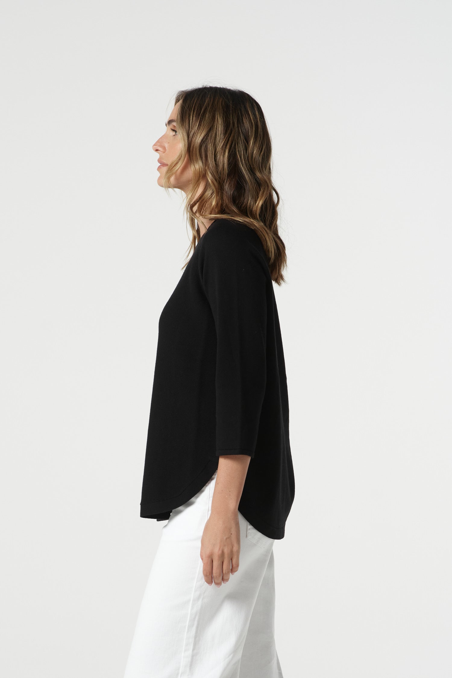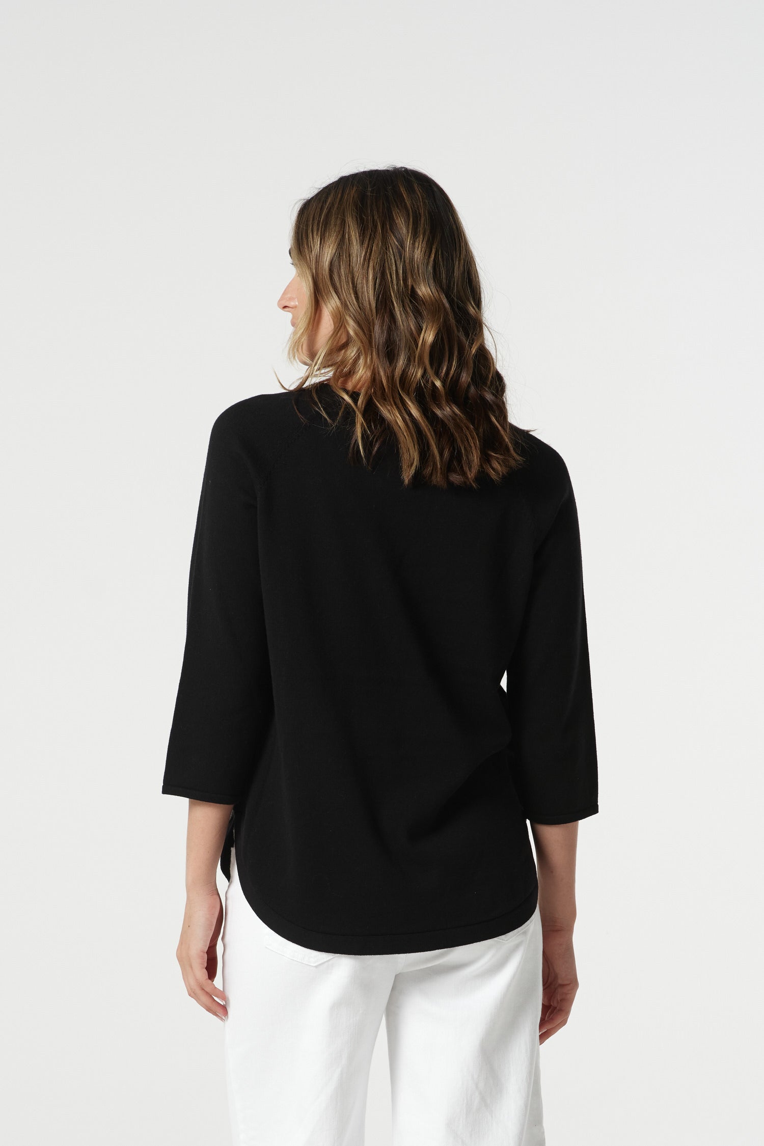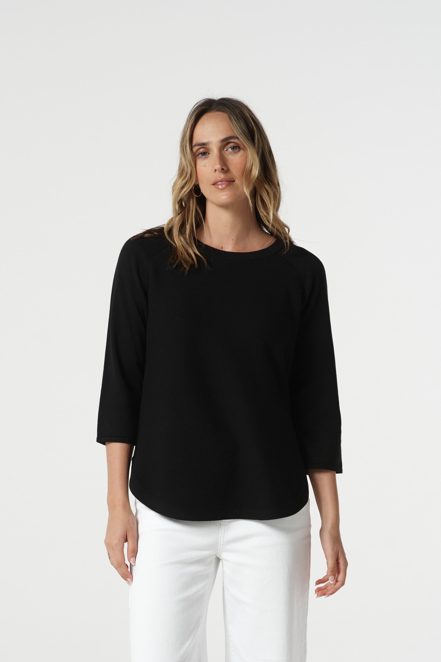 Sorbet Cotton 3/4 Sleeve Raglan Knit - Jet Black