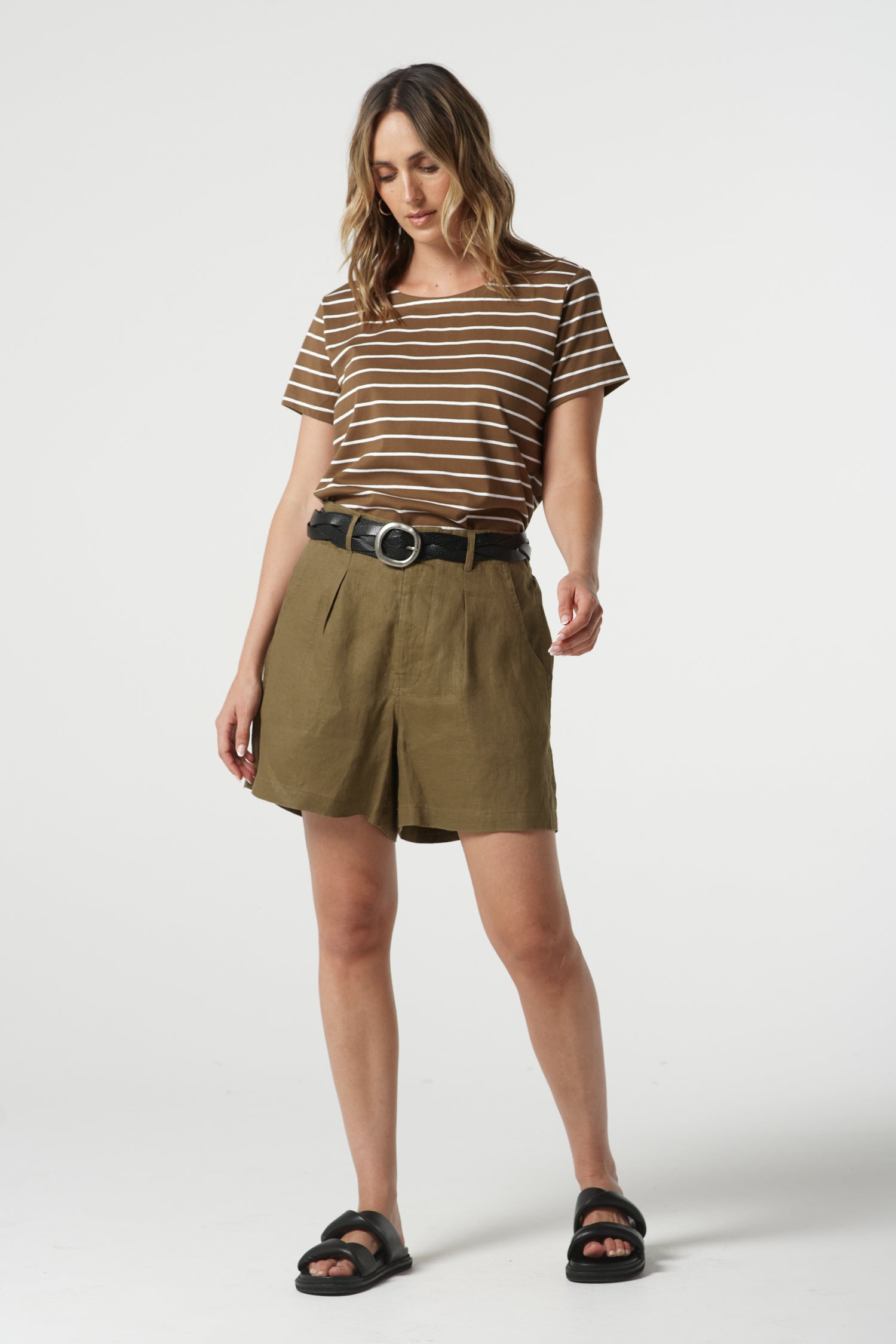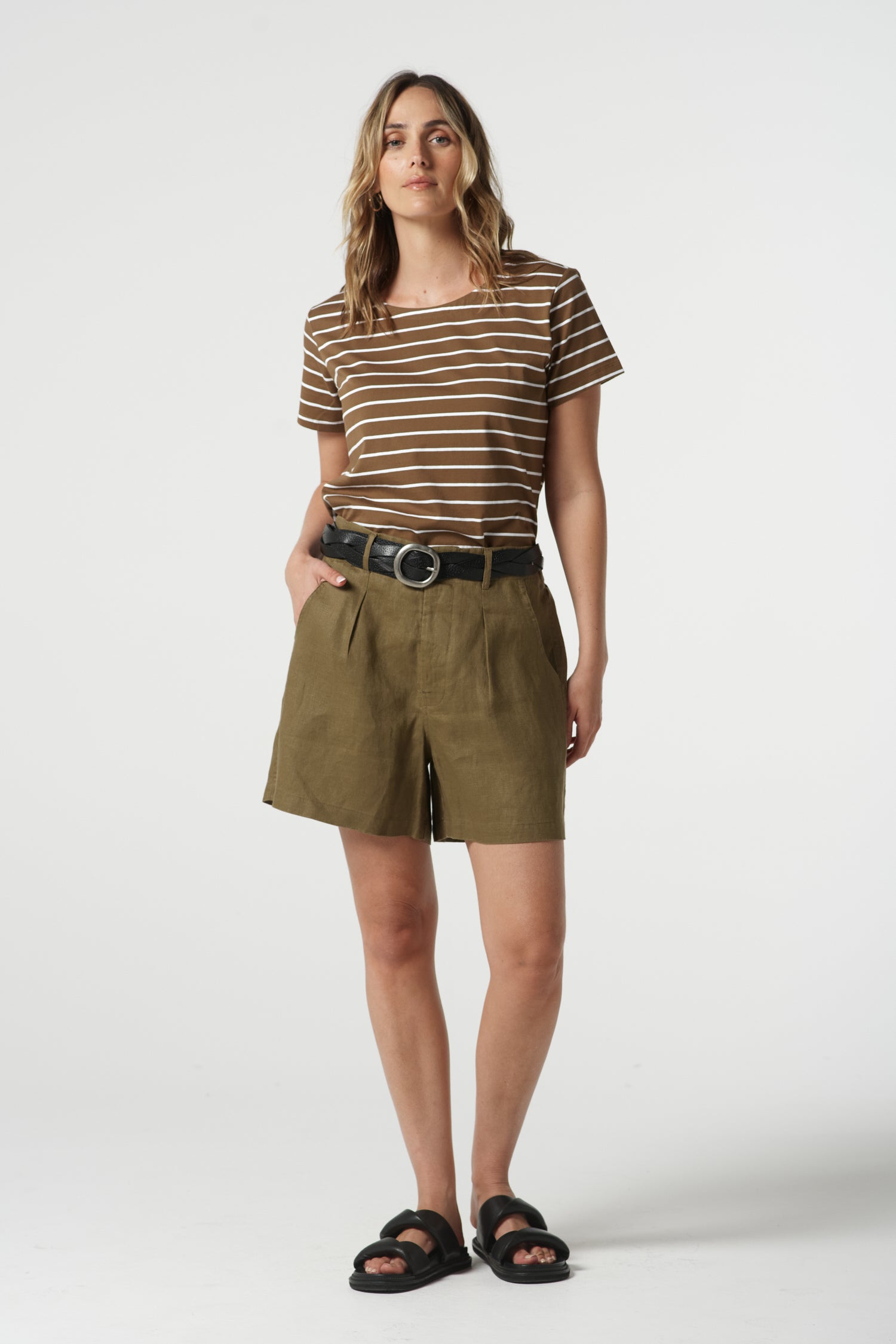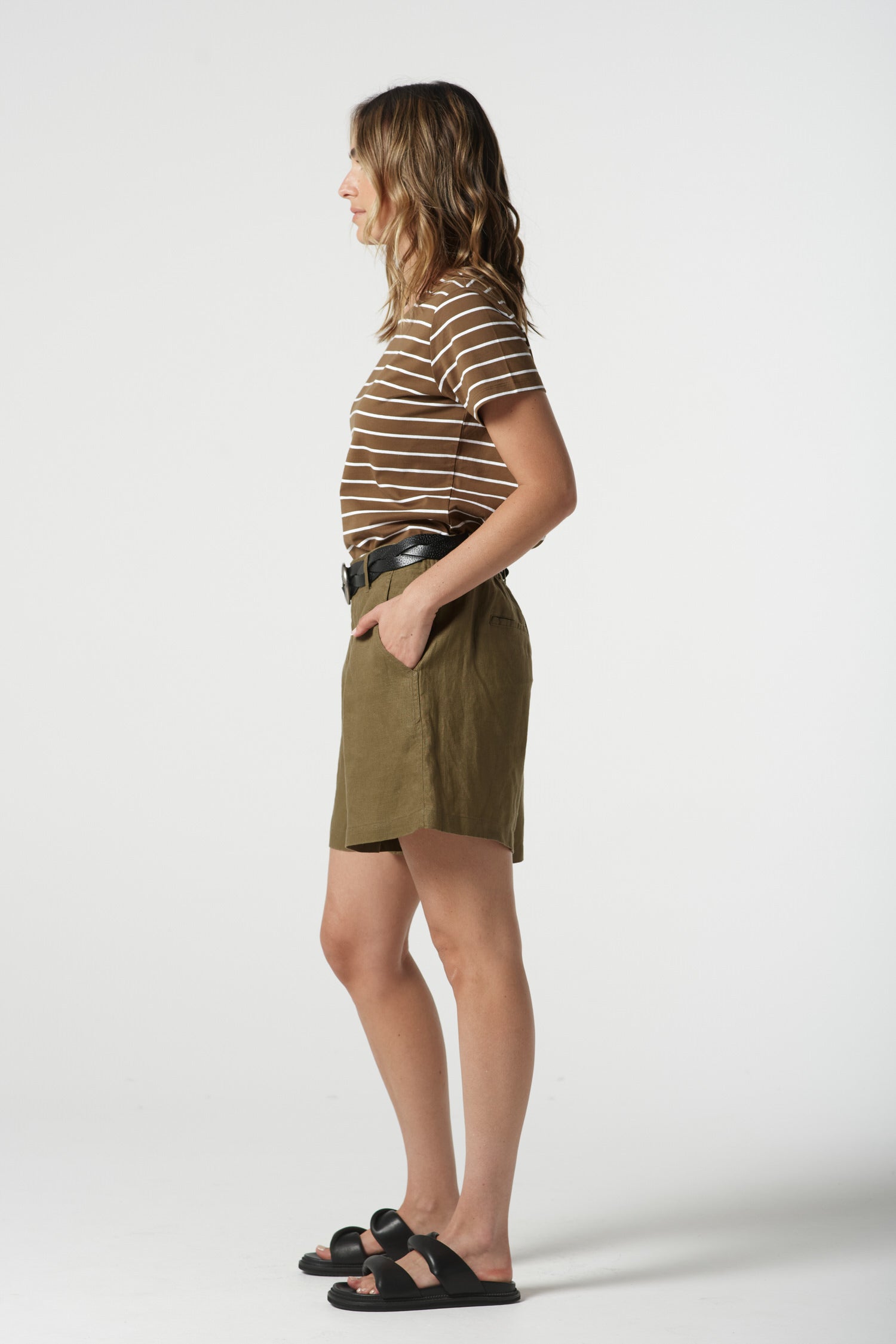 The Stone Linen Short in otter is crafted from 100% linen for cool, breathable comfort. Designed in a regular fit with front pockets, belt loops, fly front opening and an elastic back waist, it’s a versatile style made for hot days and effortless travelling.
