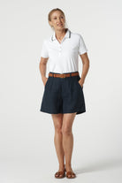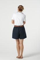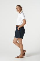 The Stone Linen Short in navy is crafted from 100% linen for cool, breathable comfort. Designed in a regular fit with front pockets, belt loops, fly front opening and an elastic back waist, it’s a versatile style made for hot days and effortless travelling.