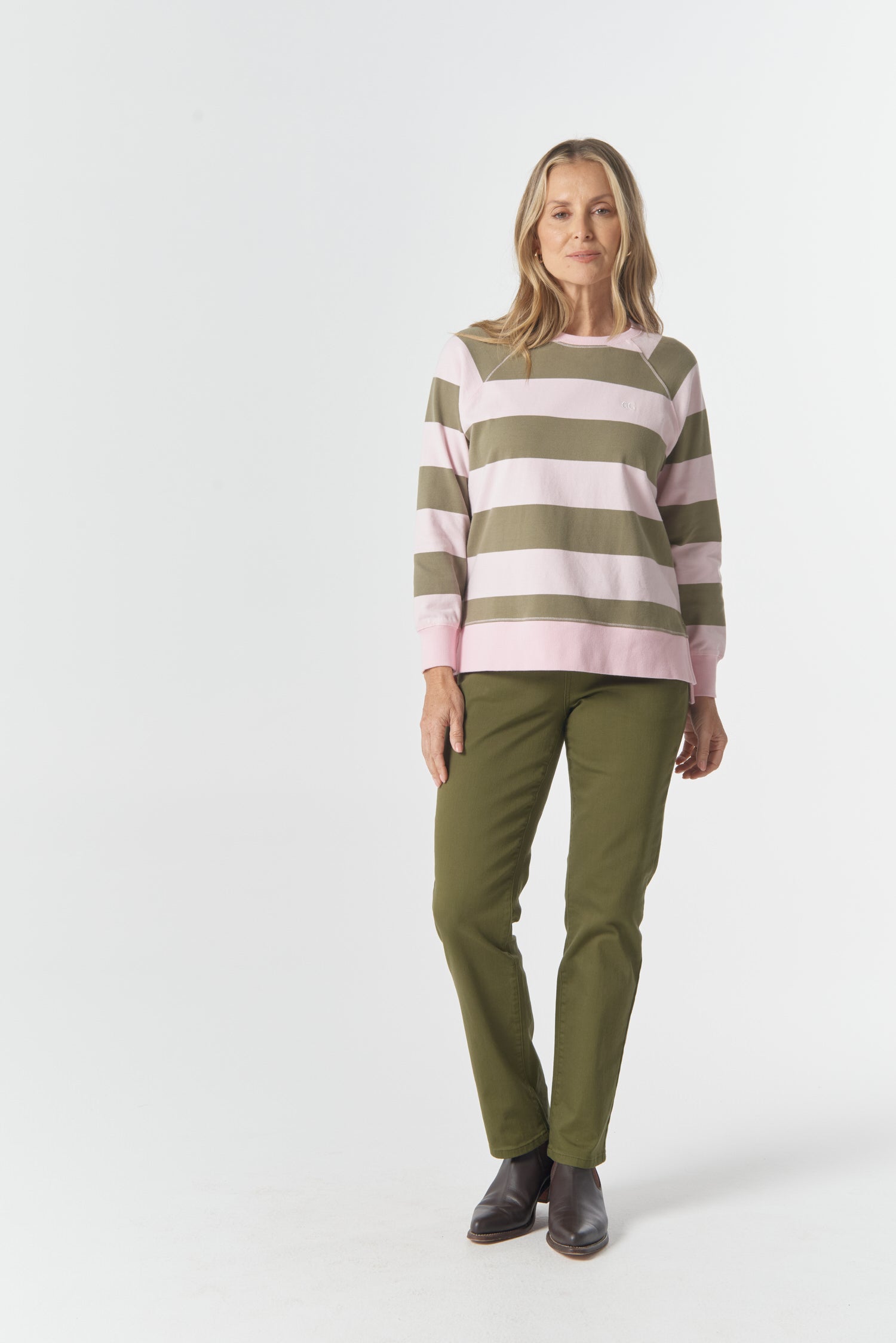The Old Favourite Cotton Sweater - Pink A Boo/Sage